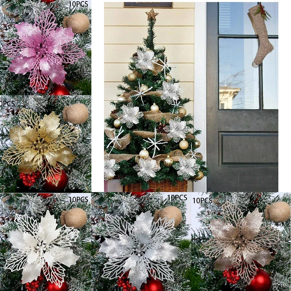Рождественские украшения, 11 см, блестящий искусственный цветок, украшение для рождественской елки, Искусственная елка, новый год 2022