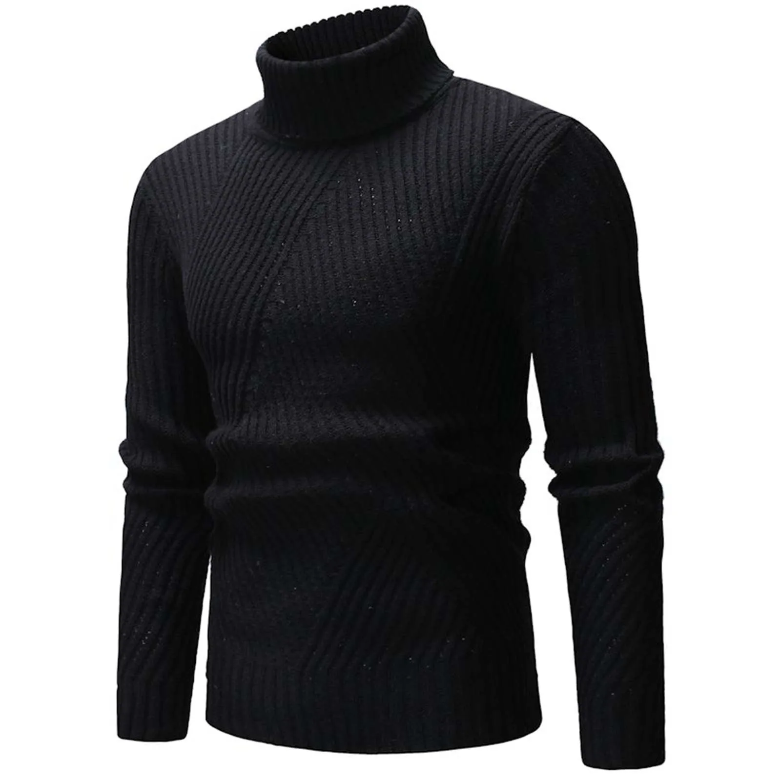 Мужские Осенне-зимний однотонный тонкий свитер с длинным рукавом и высоким воротом