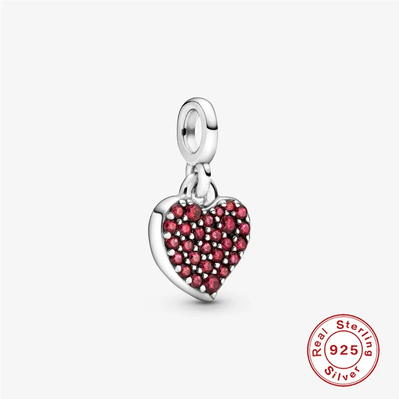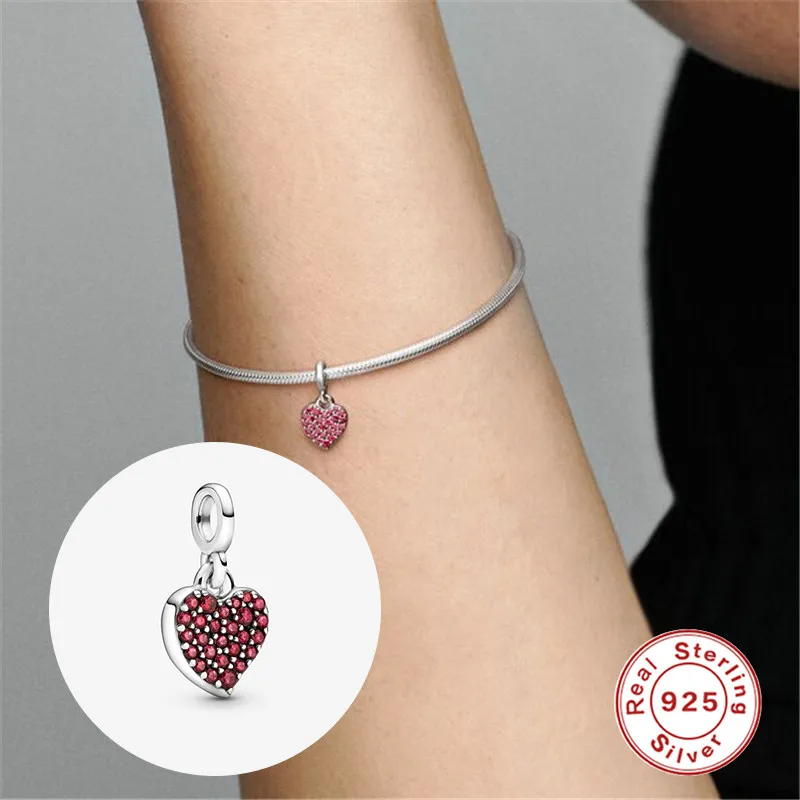 KOJ 925 пробы серебряный красный циркон кулон бусины подходят оригинальный Пандора браслеты DIY Подвески Ювелирные изделия на День святого Валентина подарки