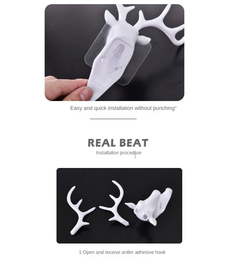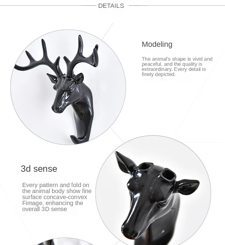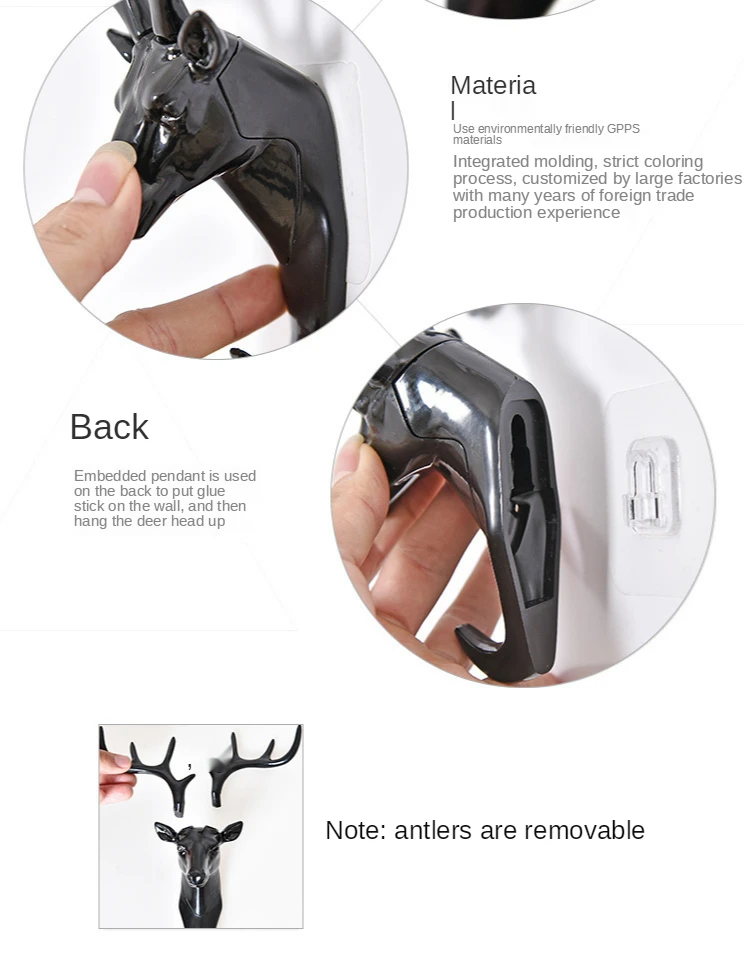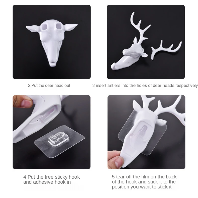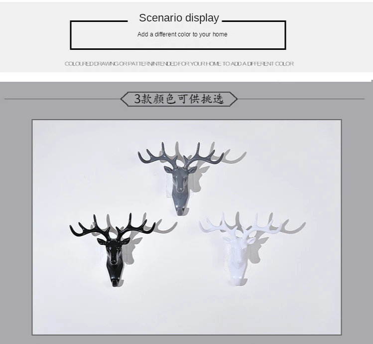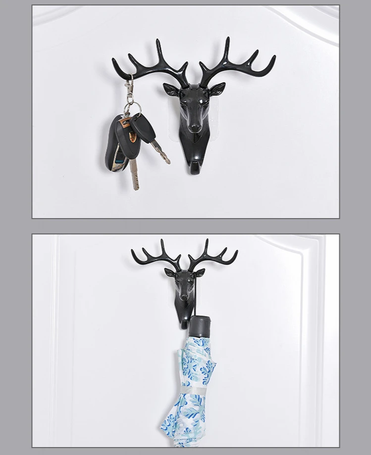 Настенный крючок с головой оленя, самоклеящаяся вешалка для одежды ...