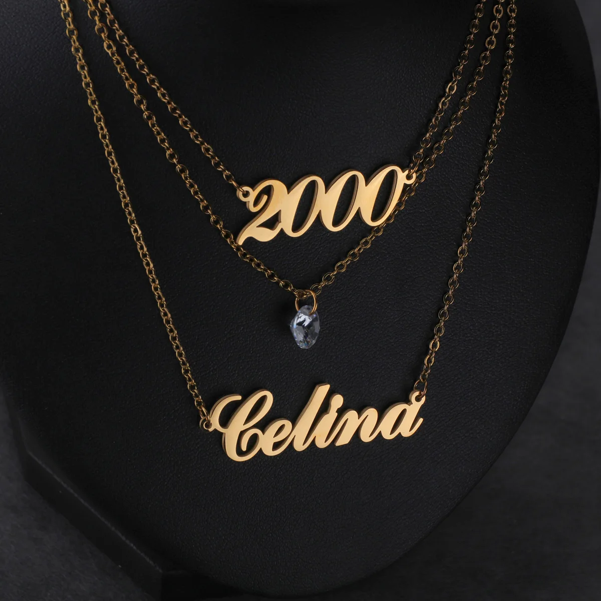 FeatureMultilayer necklaces,custom name birth year necklace,zircon necklace