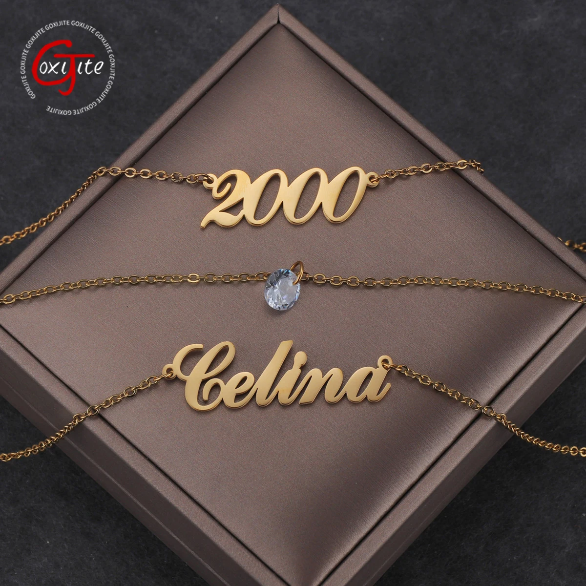 Goxijite ожерелье для женщин на заказ с именем рождения год ожерелье с персонализированной табличкой с номером циркониевые ожерелья из нержавеющей стали ювелирные изделия в подарок