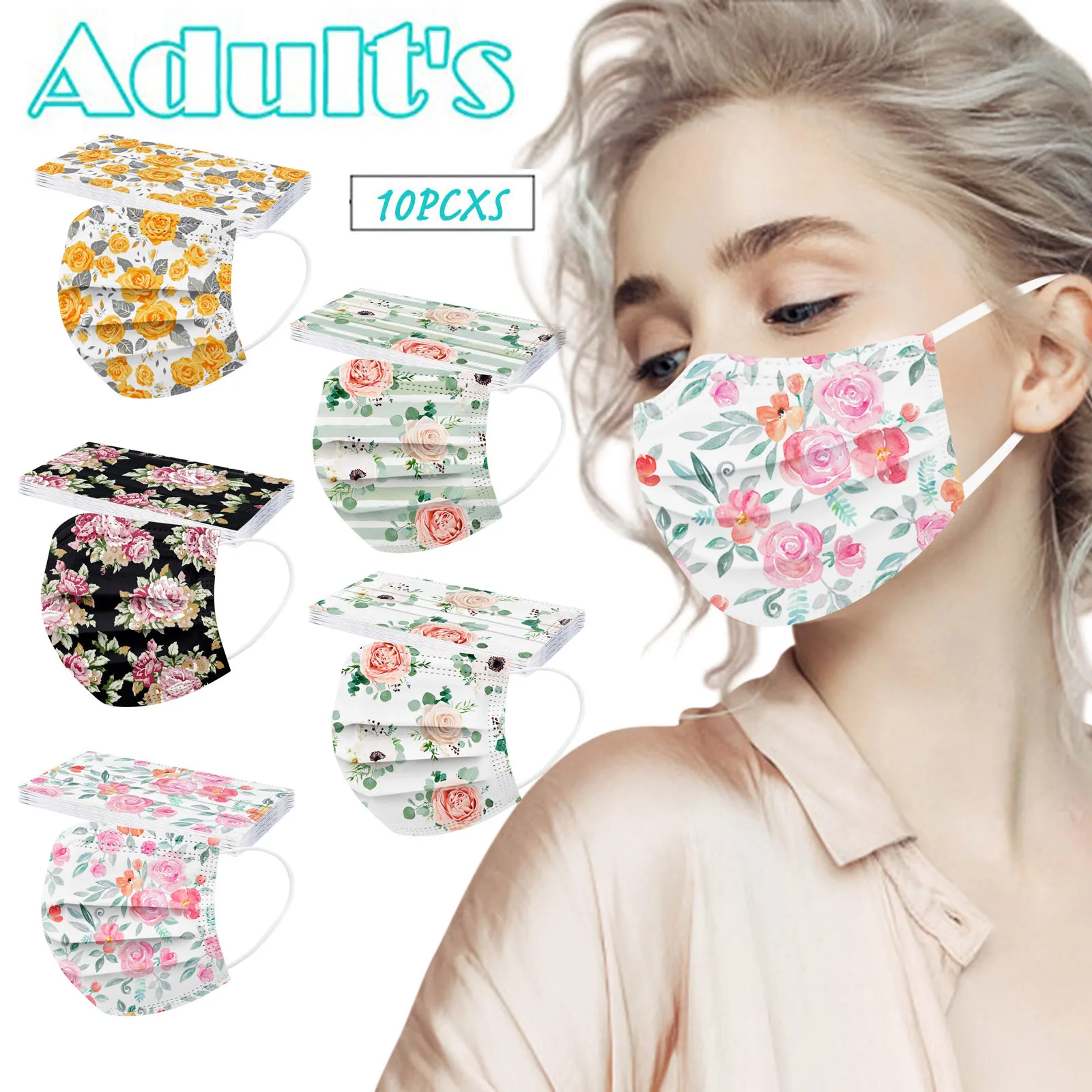 10 шт., одноразовые маски для лица с цветочным принтом