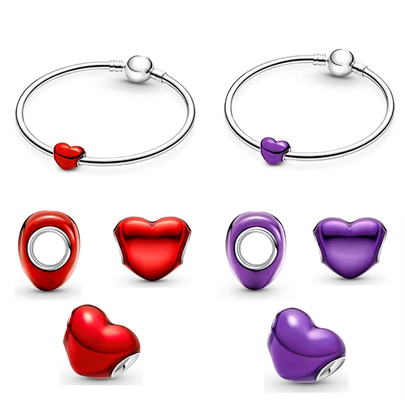 KOJ роскошный браслет DIY Ювелирные изделия из бисера красный/фиолетовый цвет капель масло любовь сердце бусины на День Святого Валентина подарок на день рождения