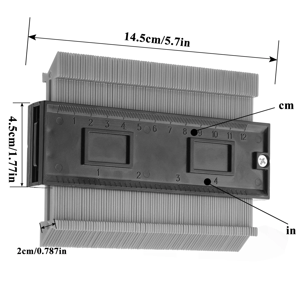 Особенности:· Широкое применение: Этот контурный манометр подходит для измерения многих нерегулярных предметов, намоточных труб, автомобильных металлических листов, круглых рам, труб, плитки, ламината, деревянных досок, воздуховодов, напольных покрытий, Ковров, литье и т. Д.· Профиль радиан линейка изготовлена из прочного и прочного АБС-пластика, который легкий и прочный.· Линия маркировки высокой четкости легко читается. Дубликатор контурного датчика подходит для обработки деревообработки, листового металла автомобиля, нержавеющей стали или других операций повторного контура.
