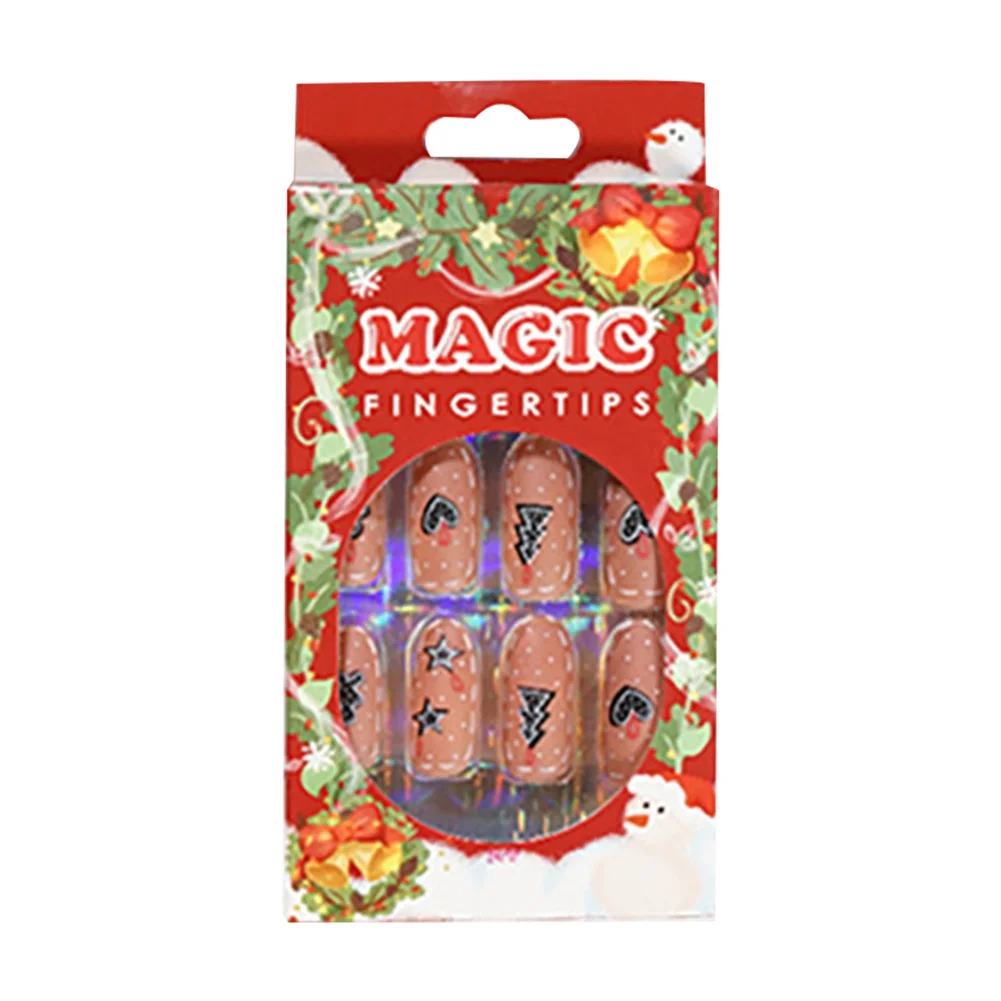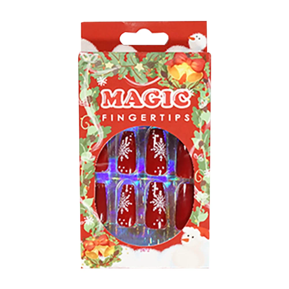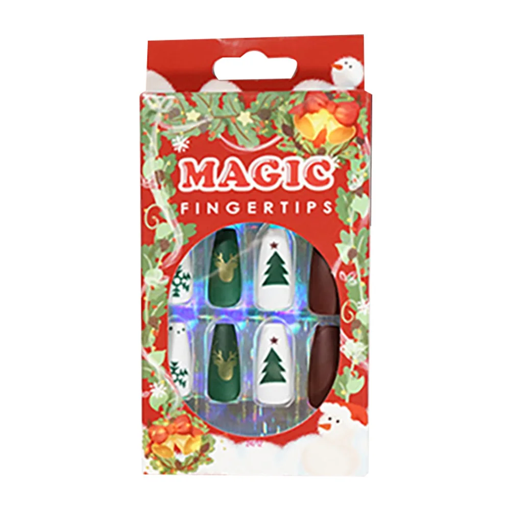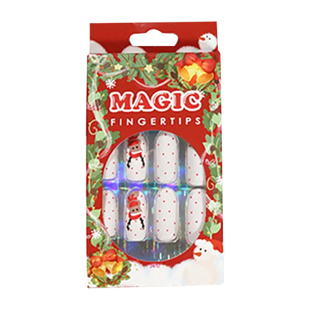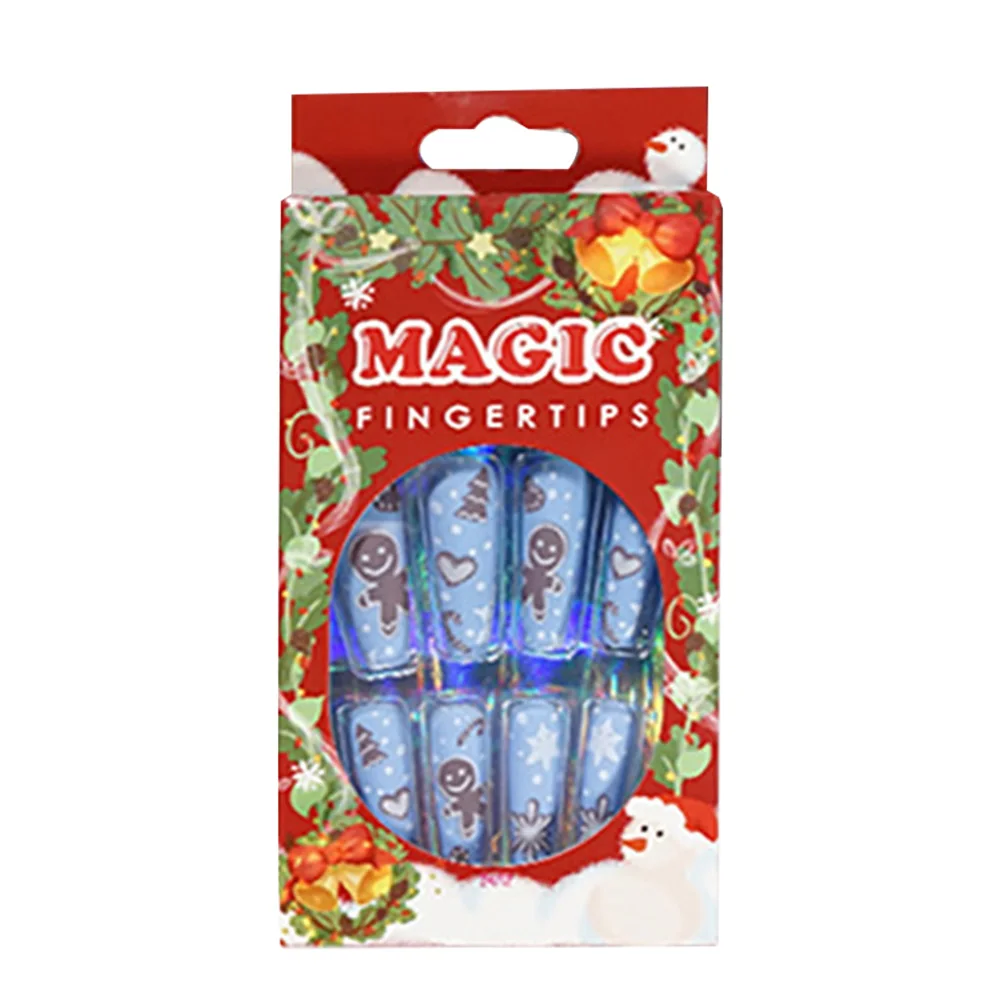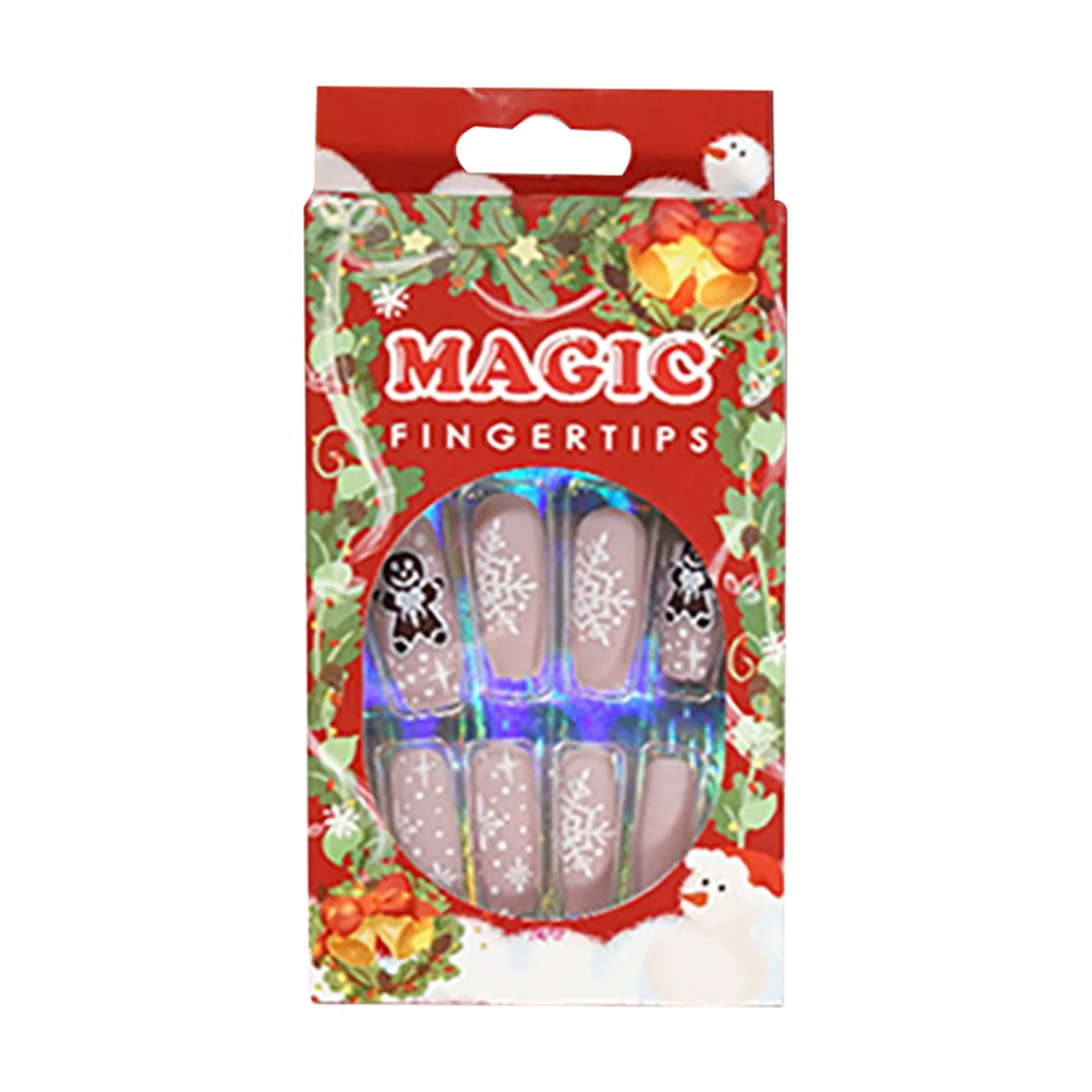 Пресс для ногтей, для нанесения с помощью клея Рождество накладные ногти с милой снежинки деревья, искусственные накладные, Длинные накладные ногти для девочек Для женщин