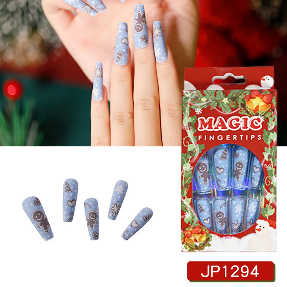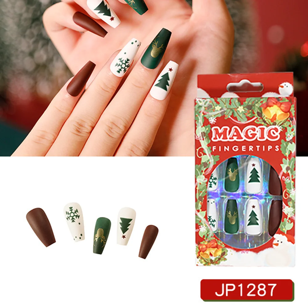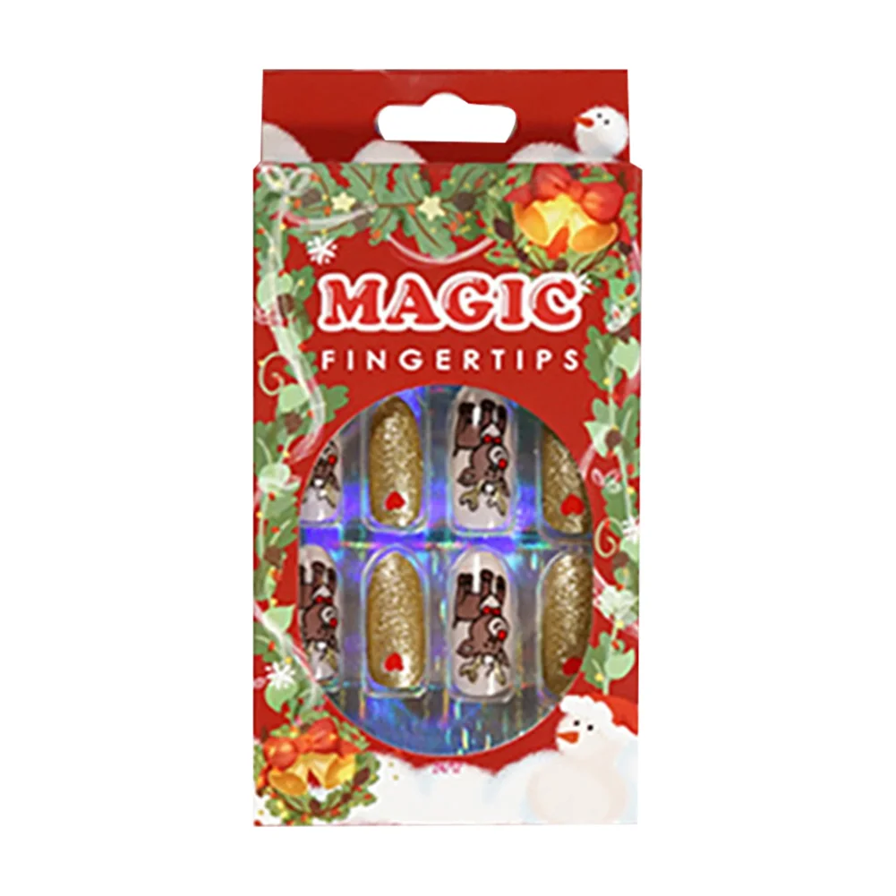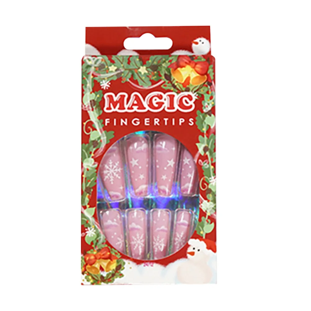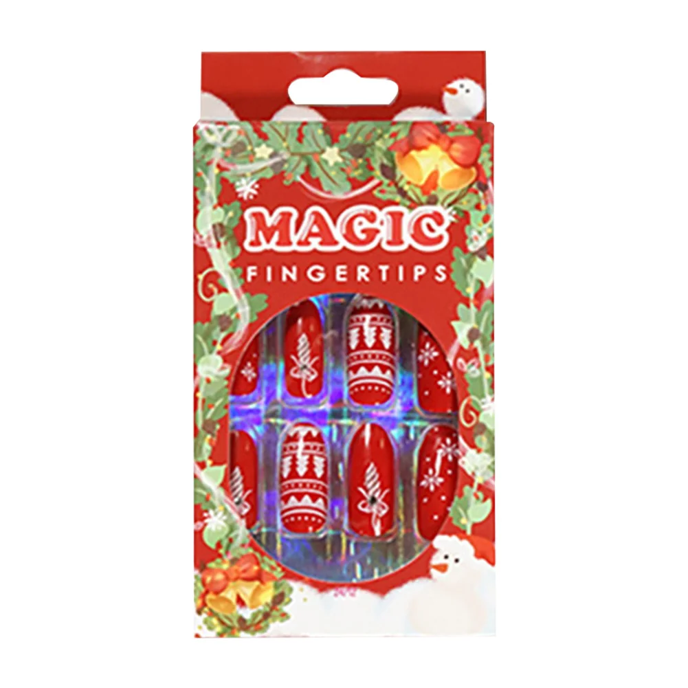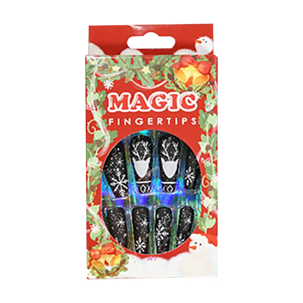 Пресс для ногтей, для нанесения с помощью клея Рождество накладные ногти с милой снежинки деревья, искусственные накладные, Длинные накладные ногти для девочек Для женщин