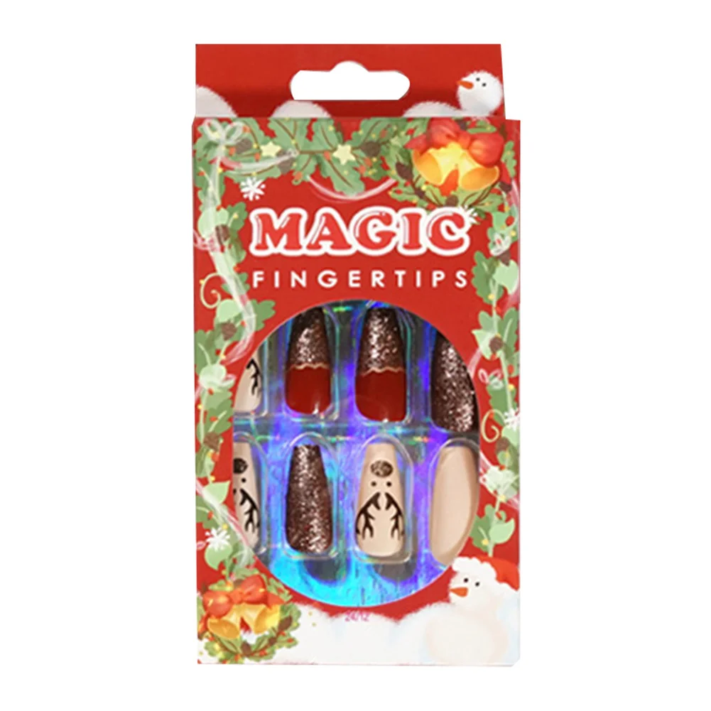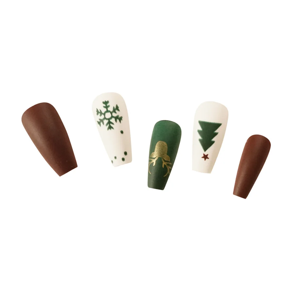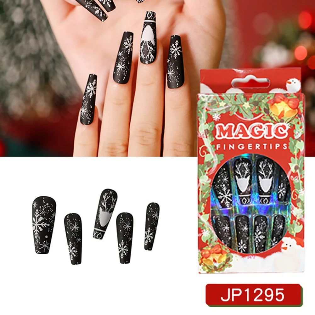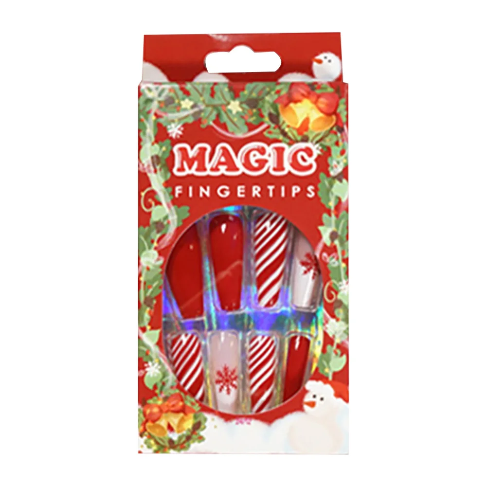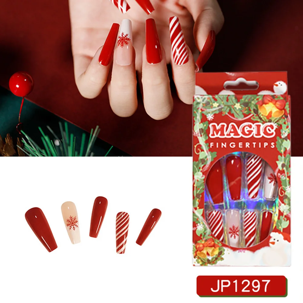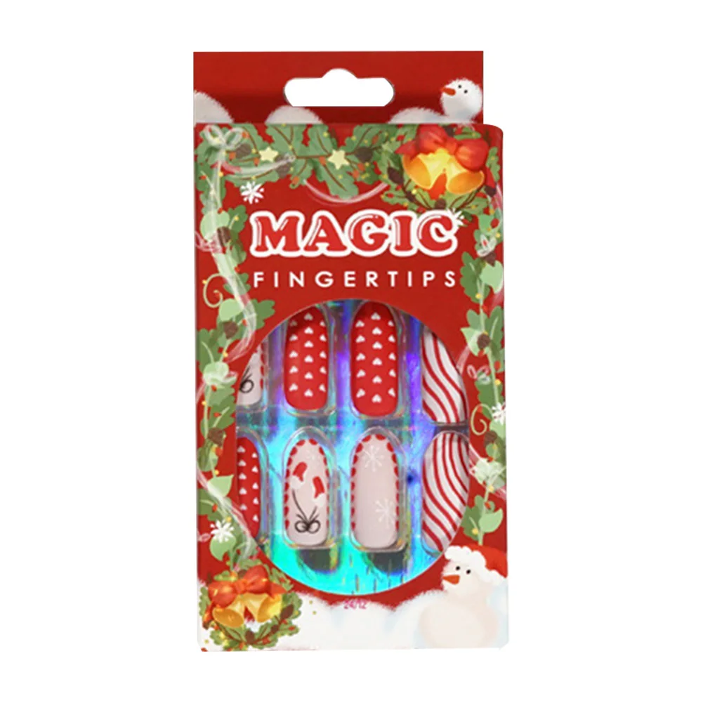 Пресс для ногтей, для нанесения с помощью клея Рождество накладные ногти с милой снежинки деревья, искусственные накладные, Длинные накладные ногти для девочек Для женщин