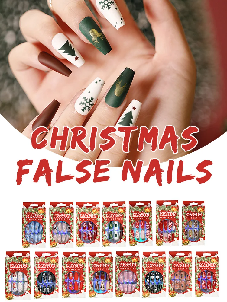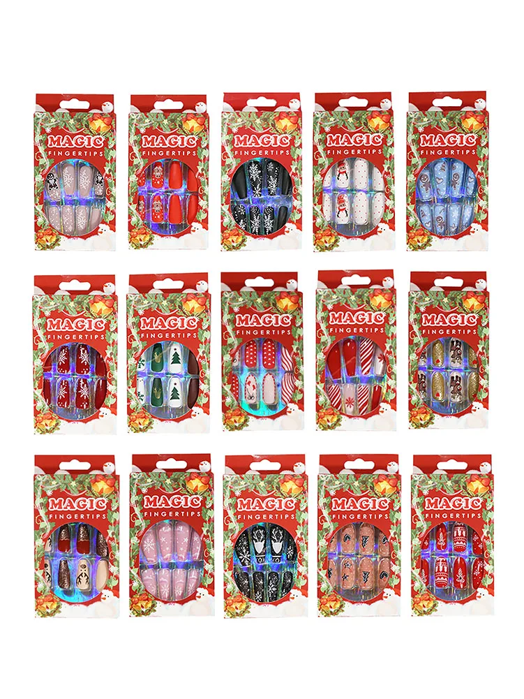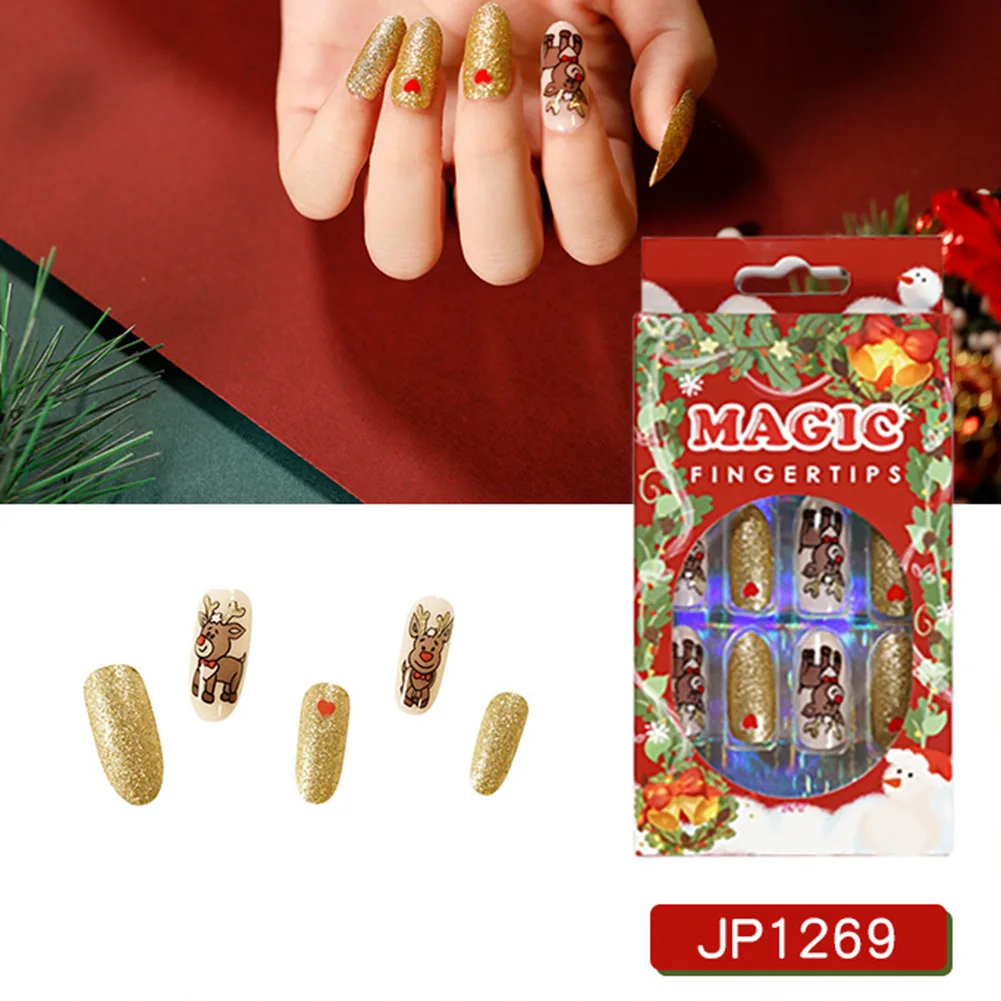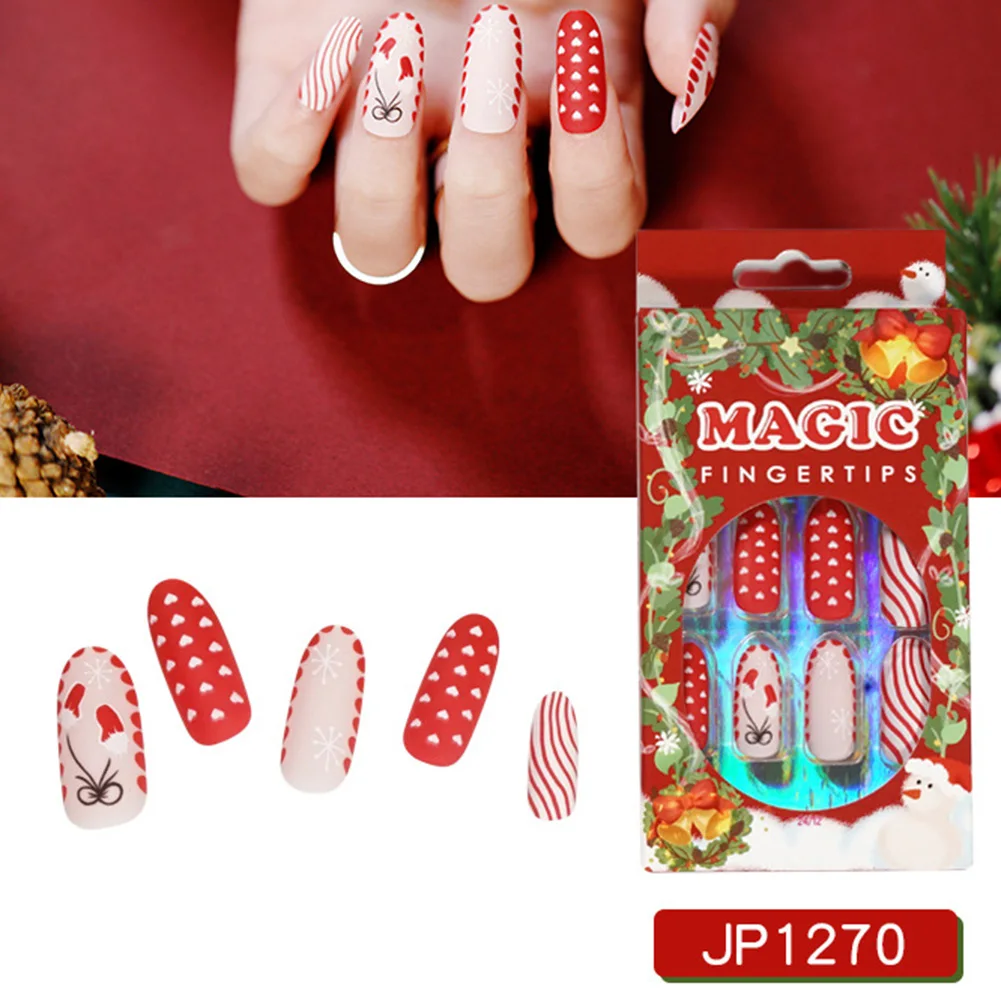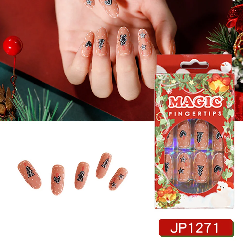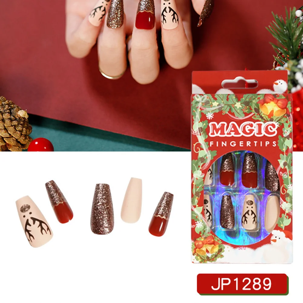 Пресс для ногтей, для нанесения с помощью клея Рождество накладные ногти с милой снежинки деревья, искусственные накладные, Длинные накладные ногти для девочек Для женщин