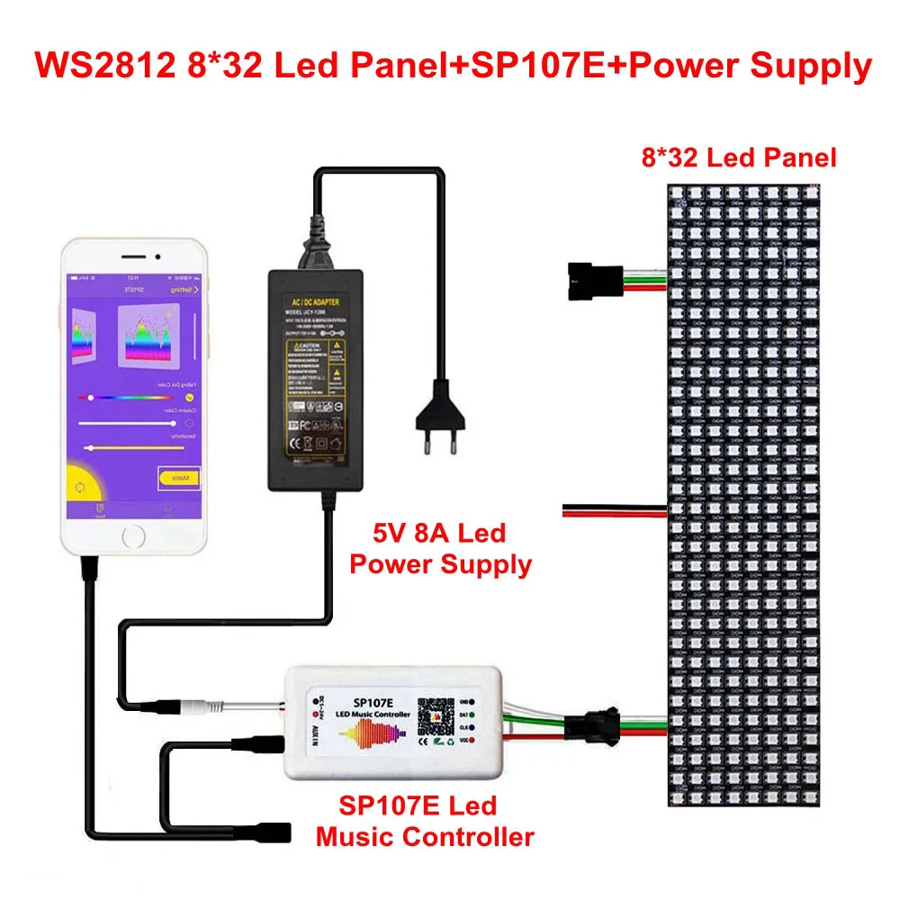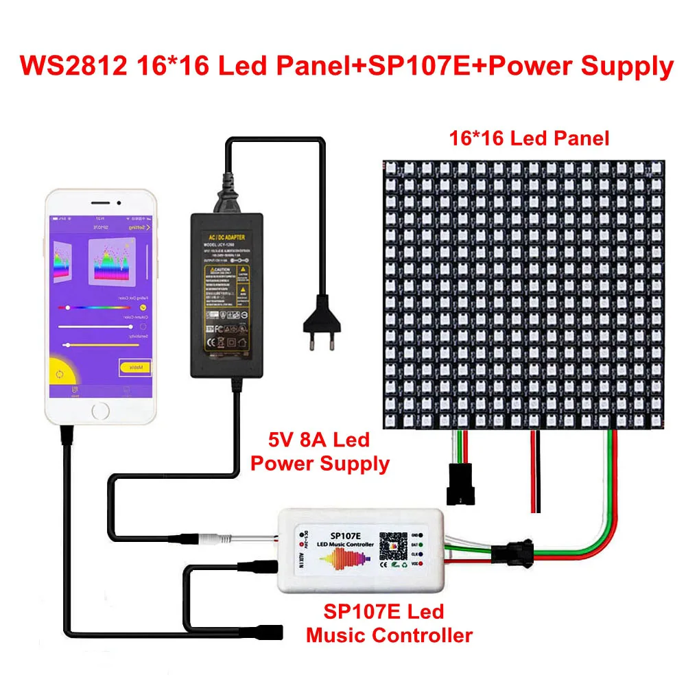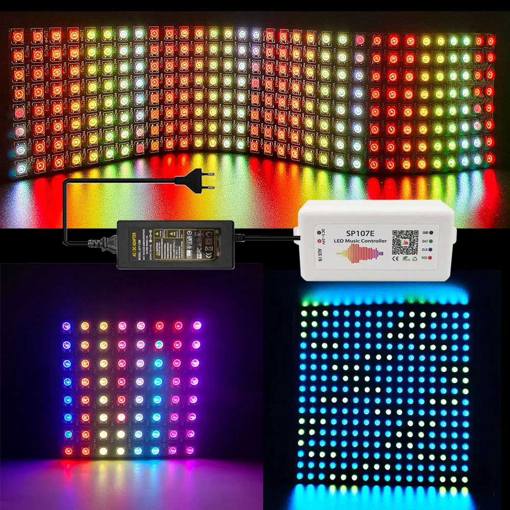 Индивидуально Адресуемая Светодиодная панель WS2812B 8x8 16X16 8X32 WS2812, светодиодный ксельная панель с трансформатором 5 в постоянного тока и музыкальным контроллером SP107E