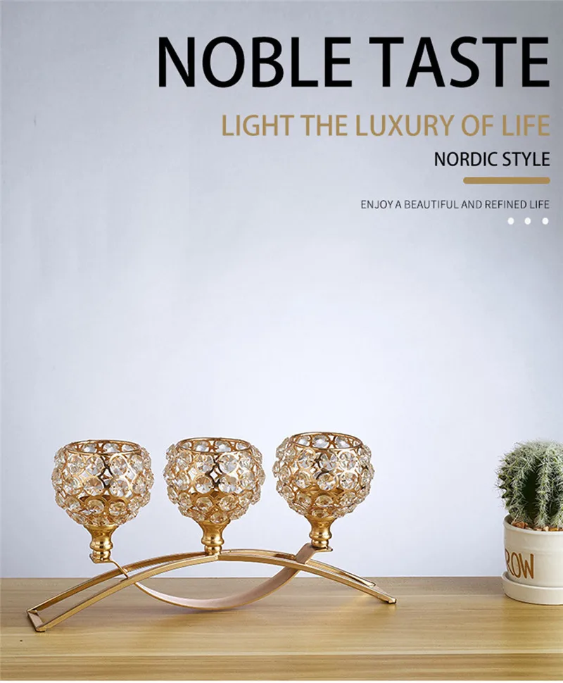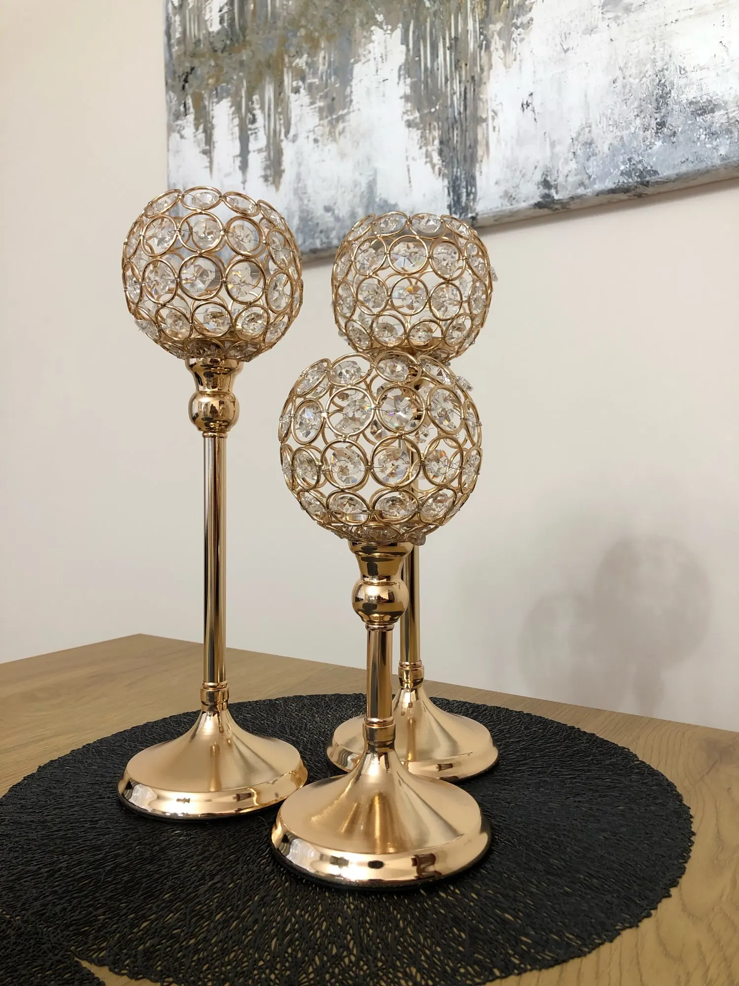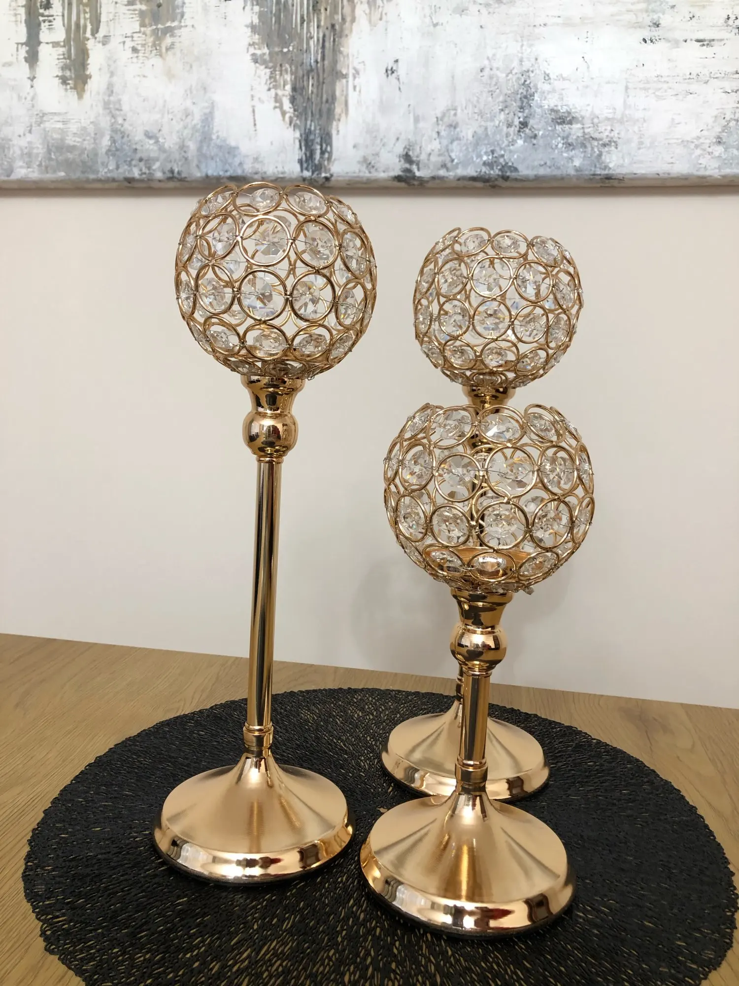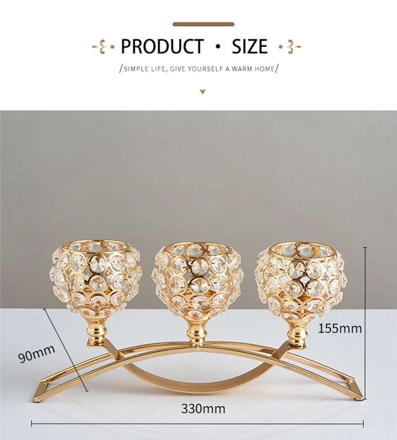 Этот подсвечник очень сложный, элегантный и уникальный, с 3 кристаллами, украшенными бусинами, на гладких блестящих металлических полосках прокрутки.
