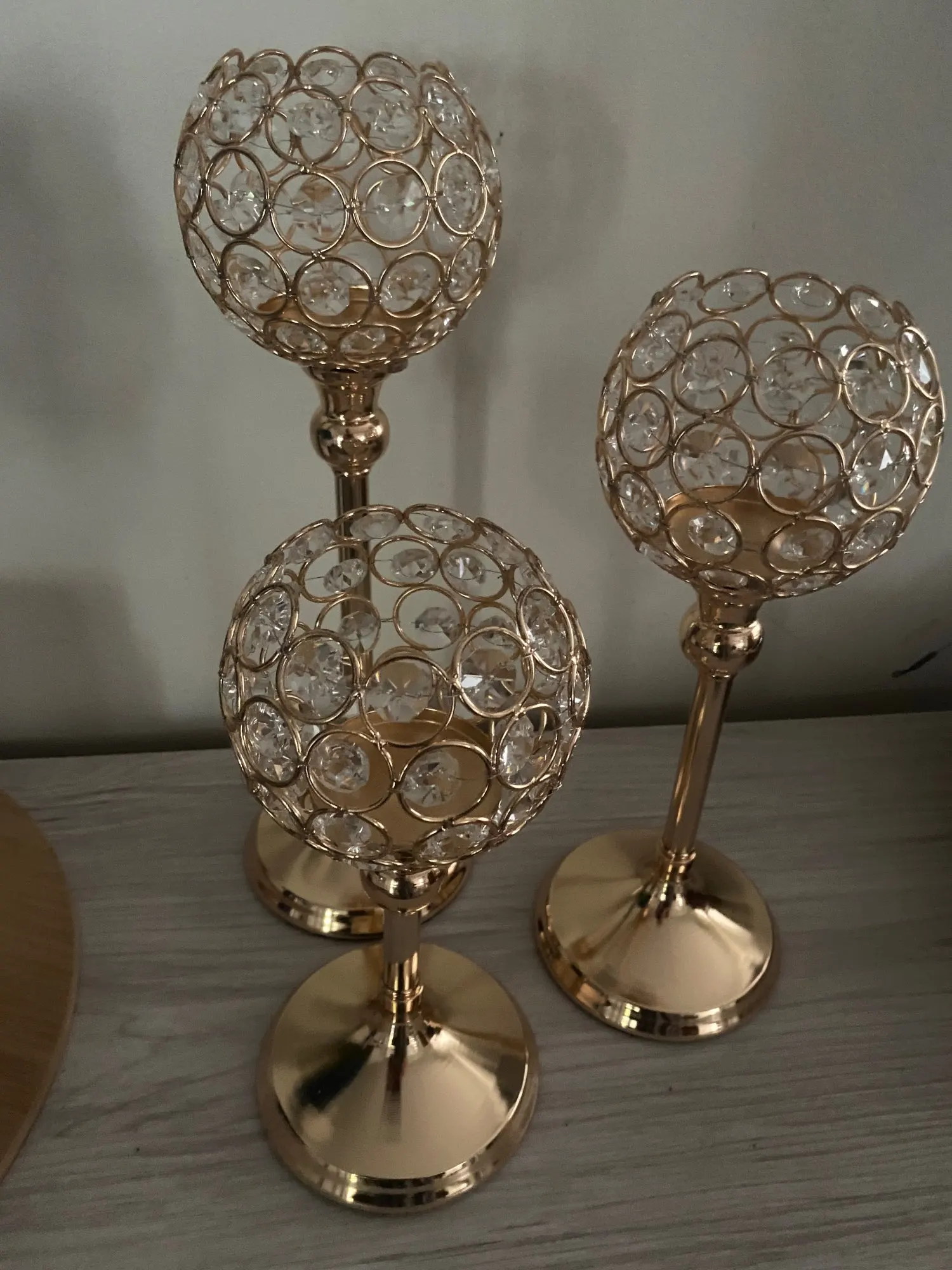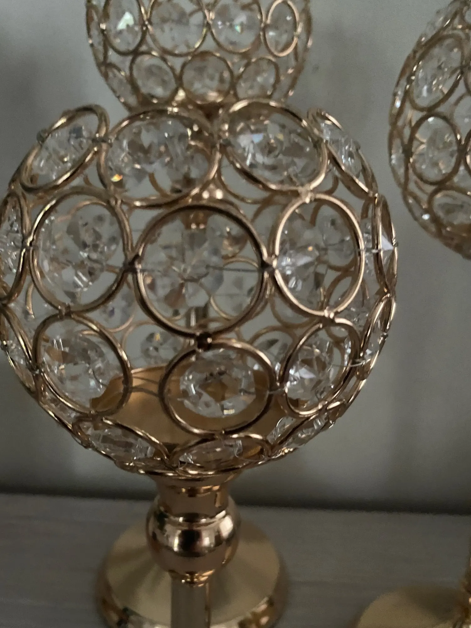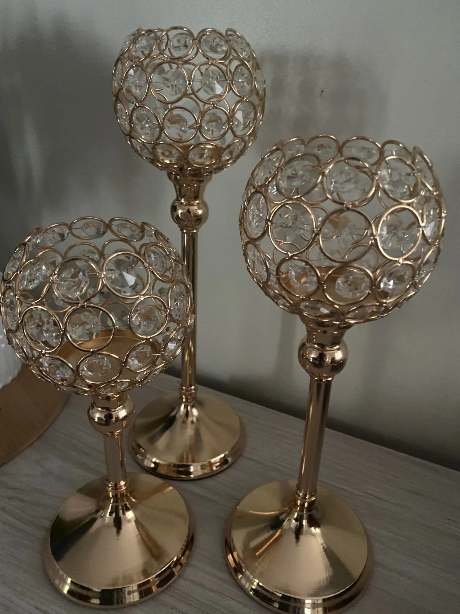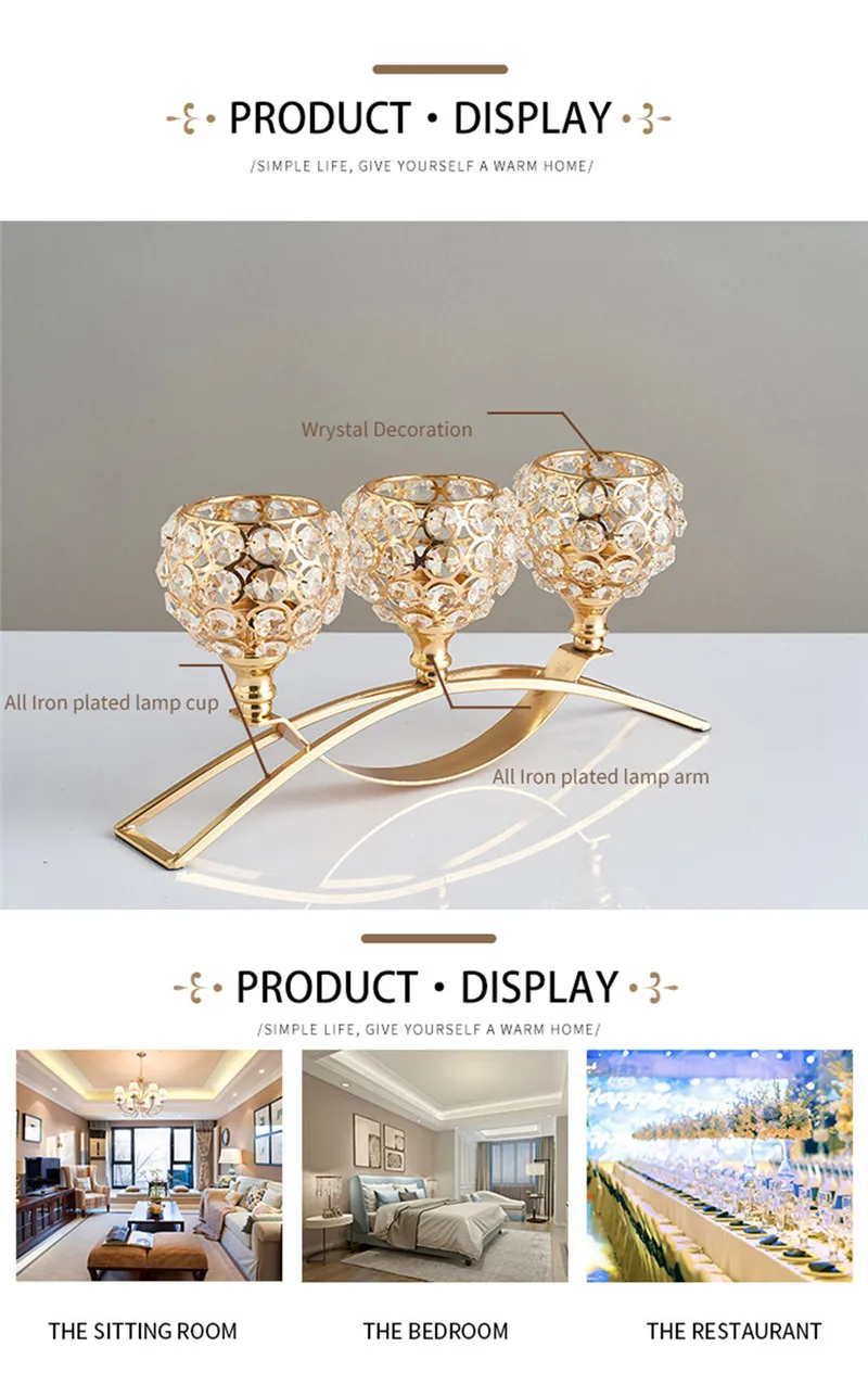 Этот подсвечник очень сложный, элегантный и уникальный, с 3 кристаллами, украшенными бусинами, на гладких блестящих металлических полосках прокрутки.