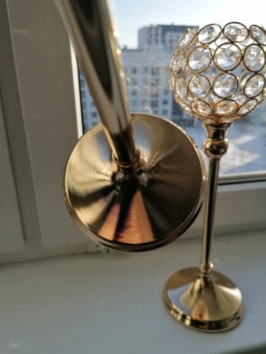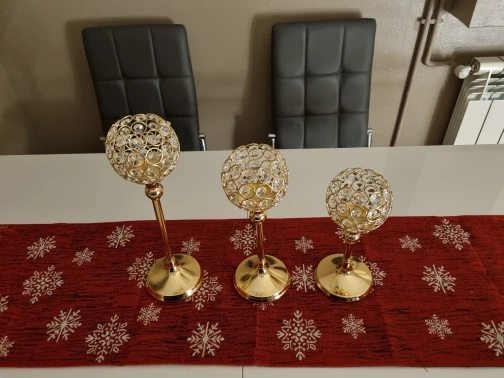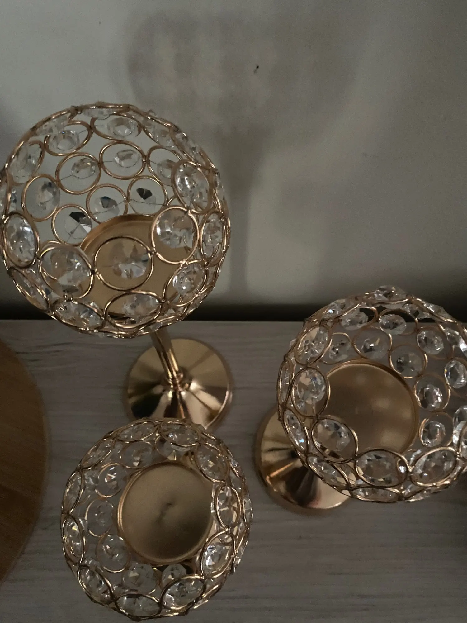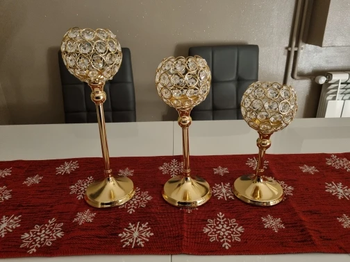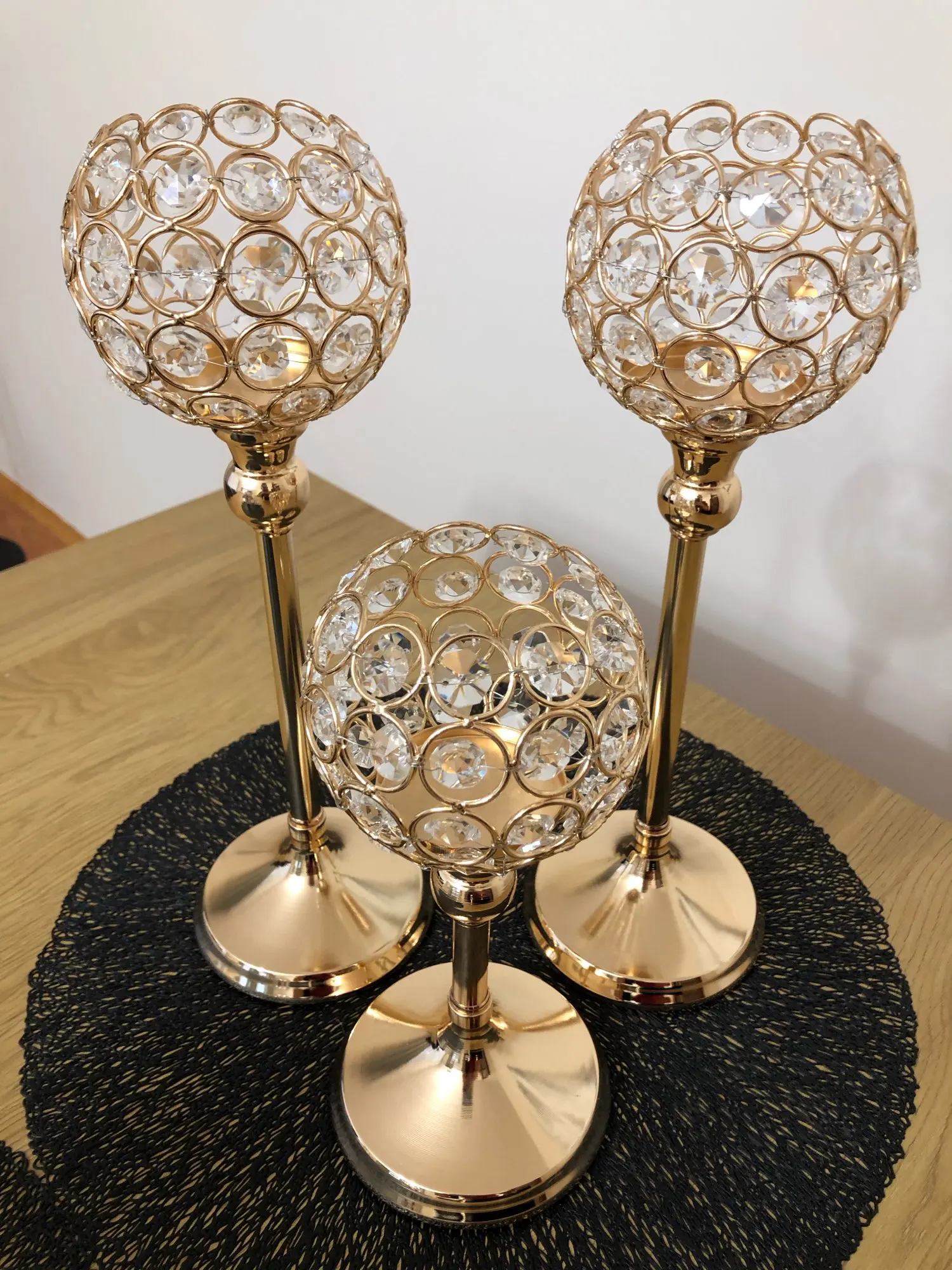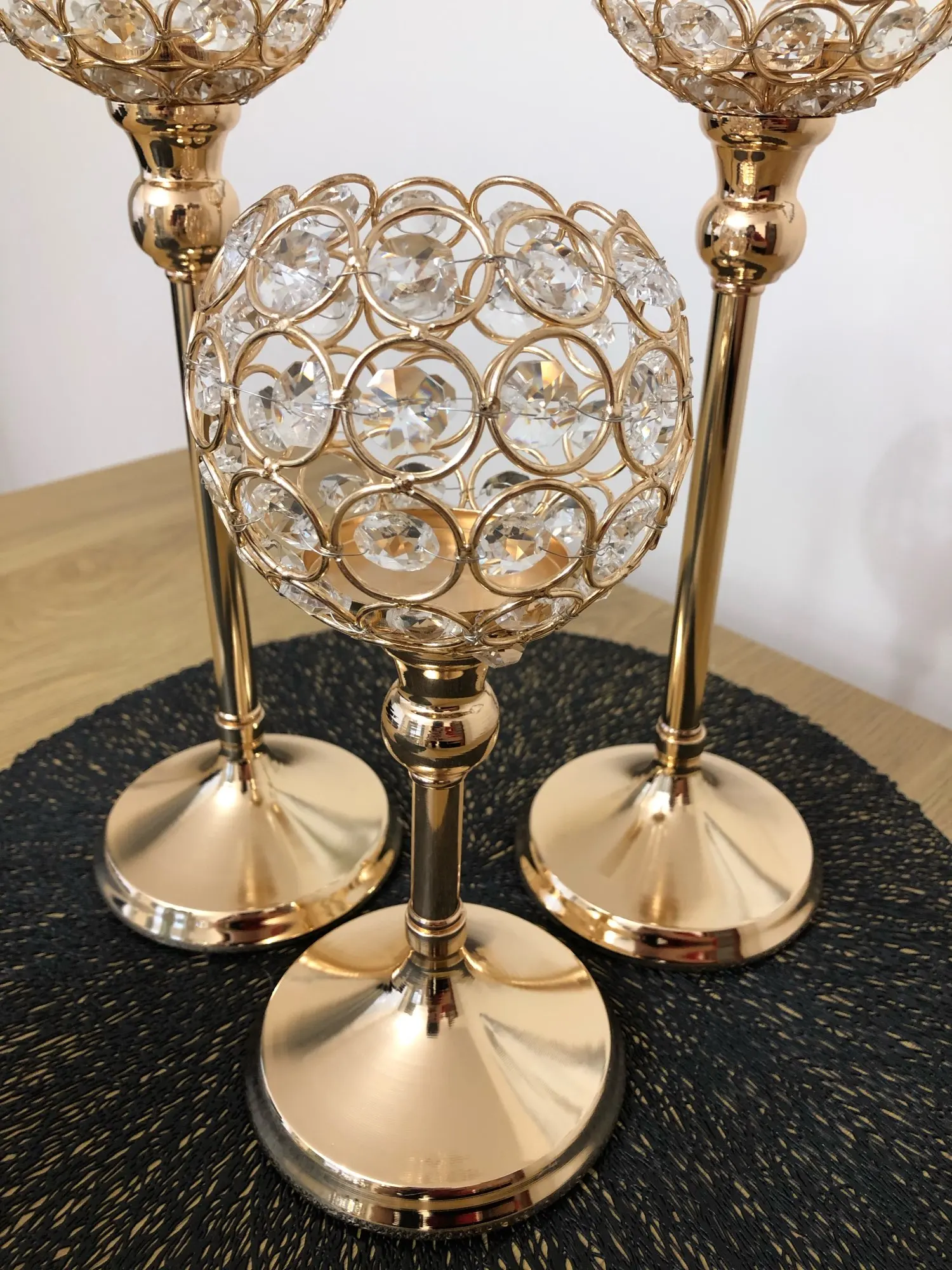 Этот подсвечник очень сложный, элегантный и уникальный, с 3 кристаллами, украшенными бусинами, на гладких блестящих металлических полосках прокрутки.