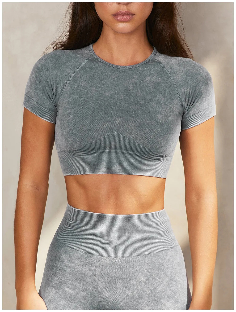 Бесшовный спортивный комплект для тренажерного зала, укороченный То...