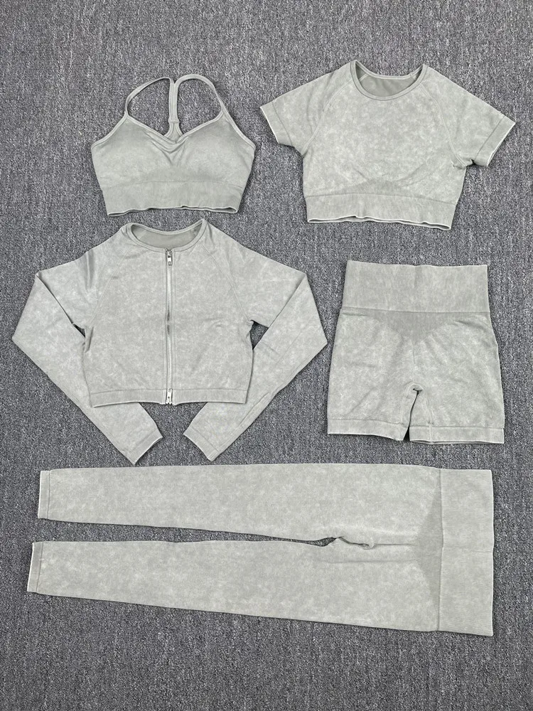5 шт., Женский бесшовный костюм для фитнеса из искусственной джинсо...