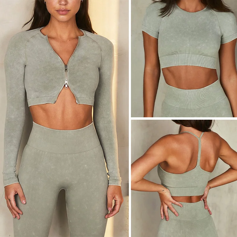 2021 песочные потертые джинсовые бесшовные вязаные костюмы для йоги...
