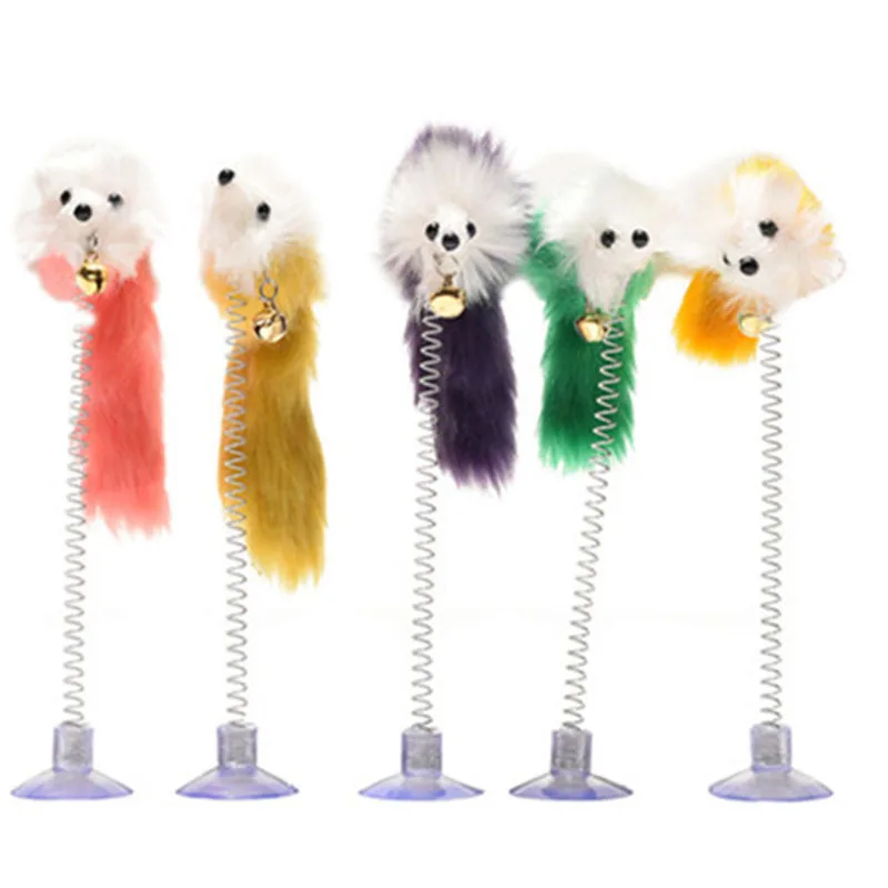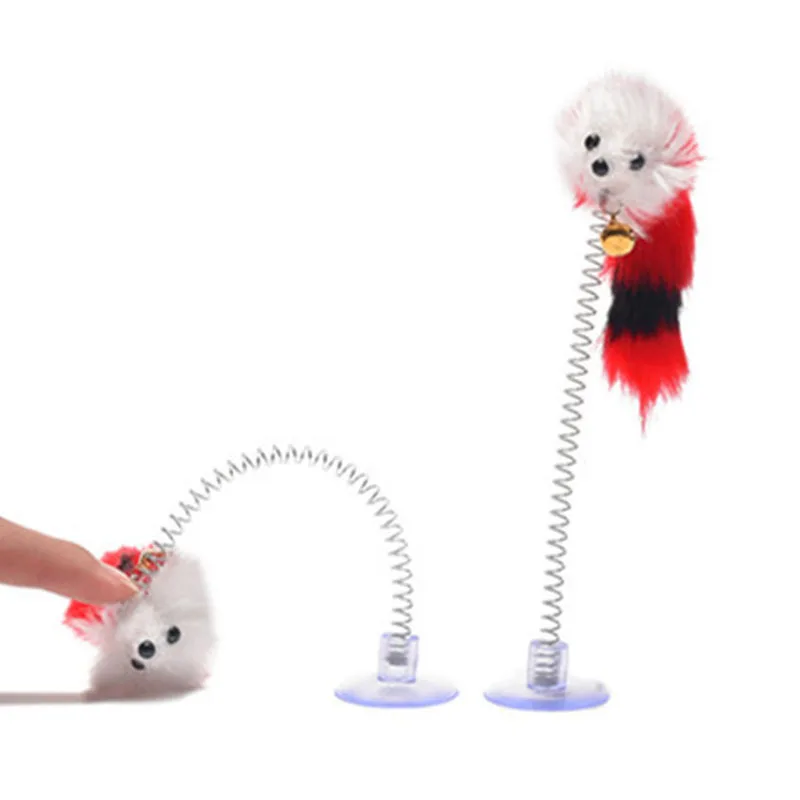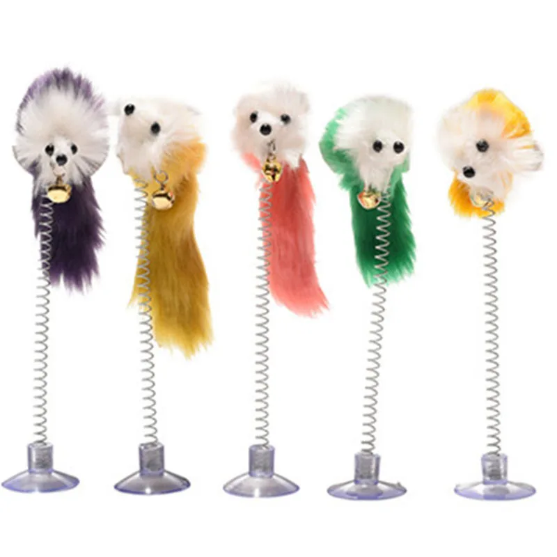 Пластиковые Забавные игрушки-тизер, 1 шт., присоска, Весенняя модель с палочкой, с кольцом, игрушка для домашних животных, товары для кошек, случайный цвет, 20x10 см