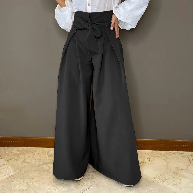 Женские брюки с широкими штанинами VONDA 2021 осень-зима длинные брюки с высокой талией и бантом однотонные женские брюки палаццо Большие размеры