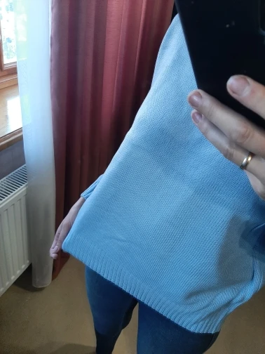 Свитер хороший, все как на фото. Все швы ровные, нитки нигде не торчат