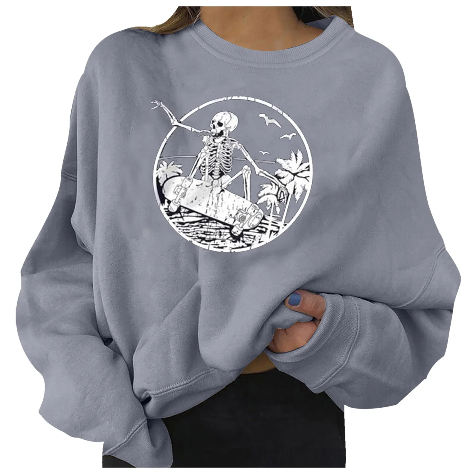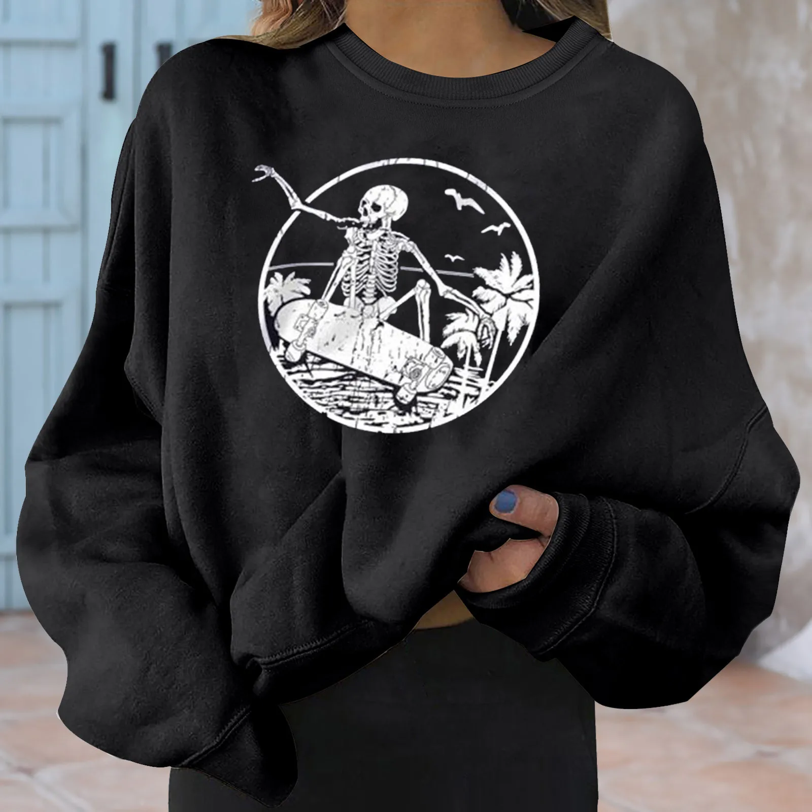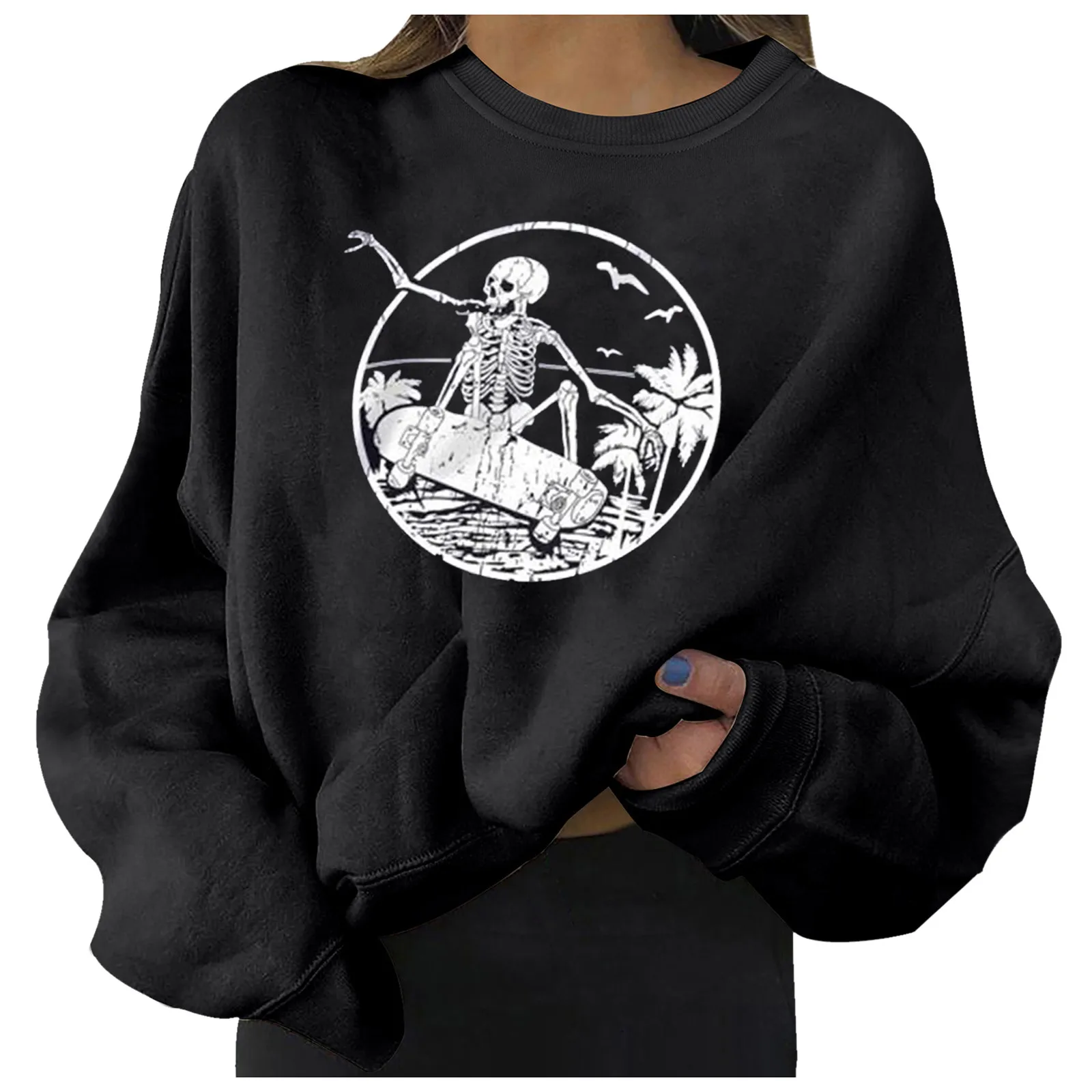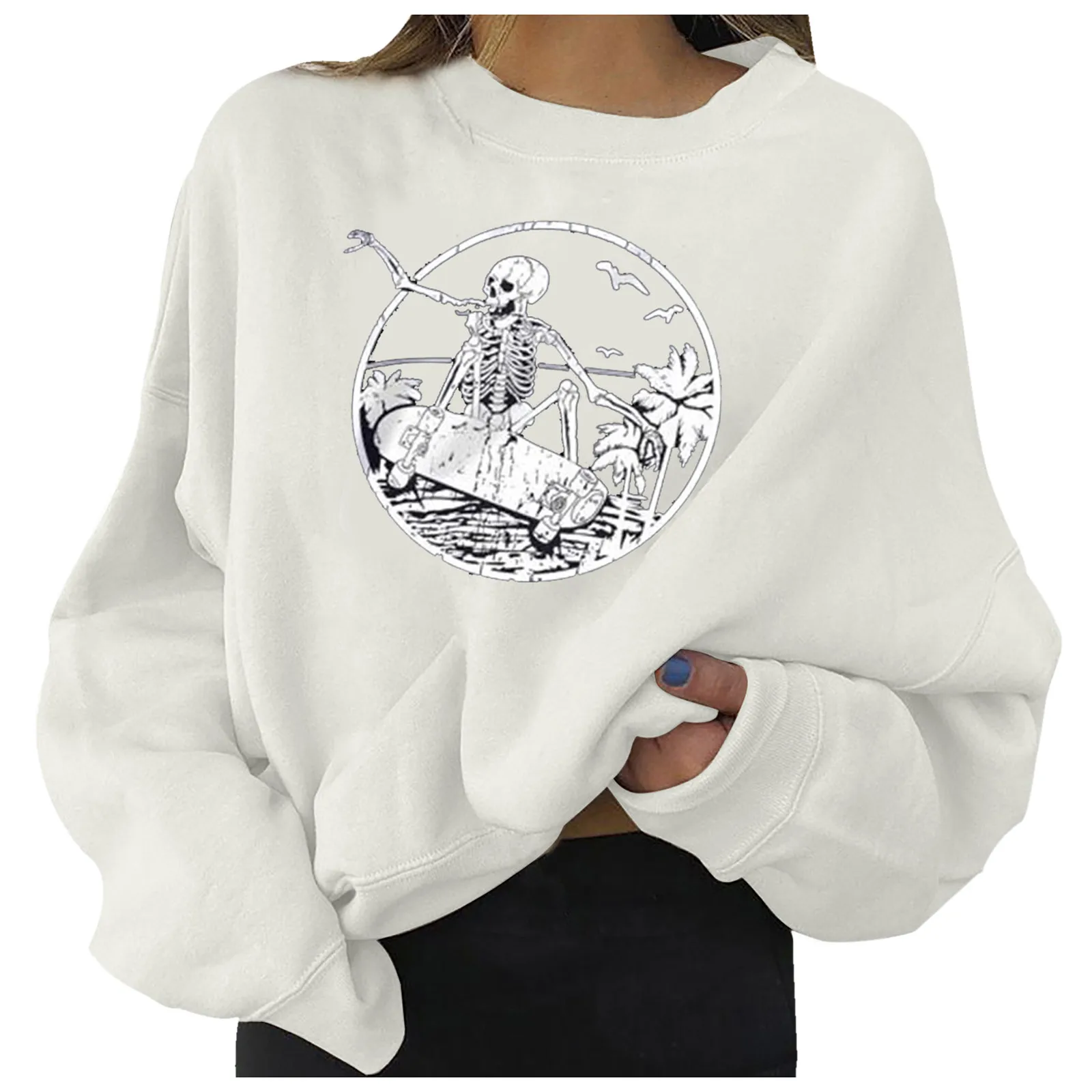 Толстовки с принтом скелета в стиле Харадзюку, пуловеры оверсайз с длинным рукавом и круглым вырезом, топ Y2k, осенне-зимние теплые свитшоты, толстовка