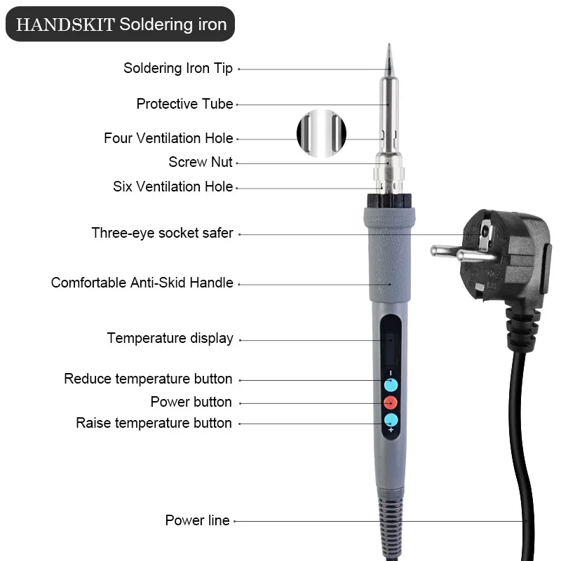 Регулируемая температура: температура паяльника может быть скорректирована с 80 ℃/ 356 ℉ до 480 ℃/ 896 ℉. Поэтому он может регулировать температуру более точно и эффективно.