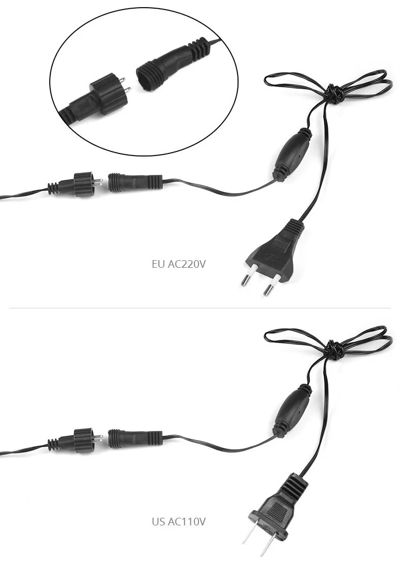 1. Тип: подключаемый Водонепроницаемый светодиодный светильник2. Корпус лампы: прозрачный, молочно-белый3. Длина: 3M-10LED/6M-20LED/10M-38LED4. Светящийся цвет: белый, теплый белый5. Рабочее напряжение: 220 В, 110 В6. Тип вилки: Европейская Стандартная Круглая вилка, американская стандартная плоская вилка8. Светильник с водонепроницаемым разъемом для мужчин и женщин, до 10 струн можно подключить в серии