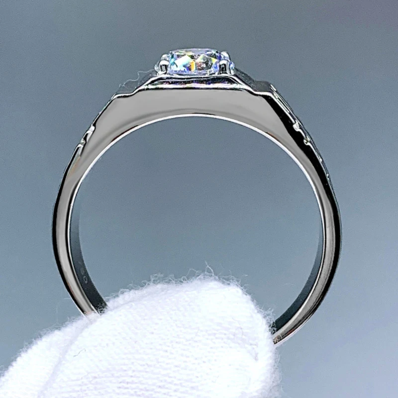 Кольцо мужское из серебра 925 пробы с муассанитом, цвет D, 1 карат