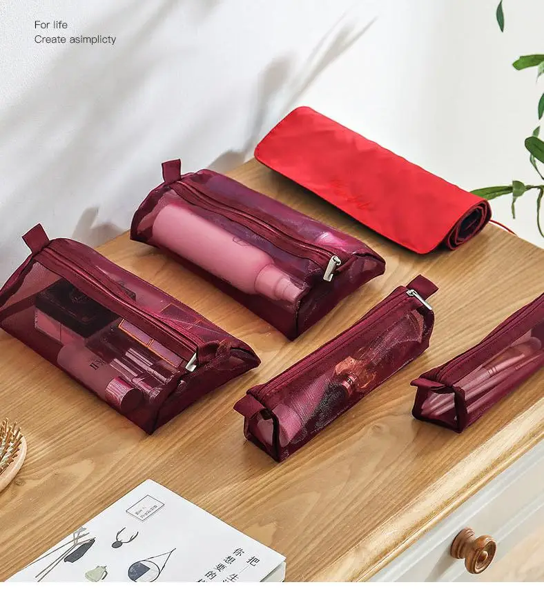 4 шт. в 1, Женская сетчатая косметичка на молнии