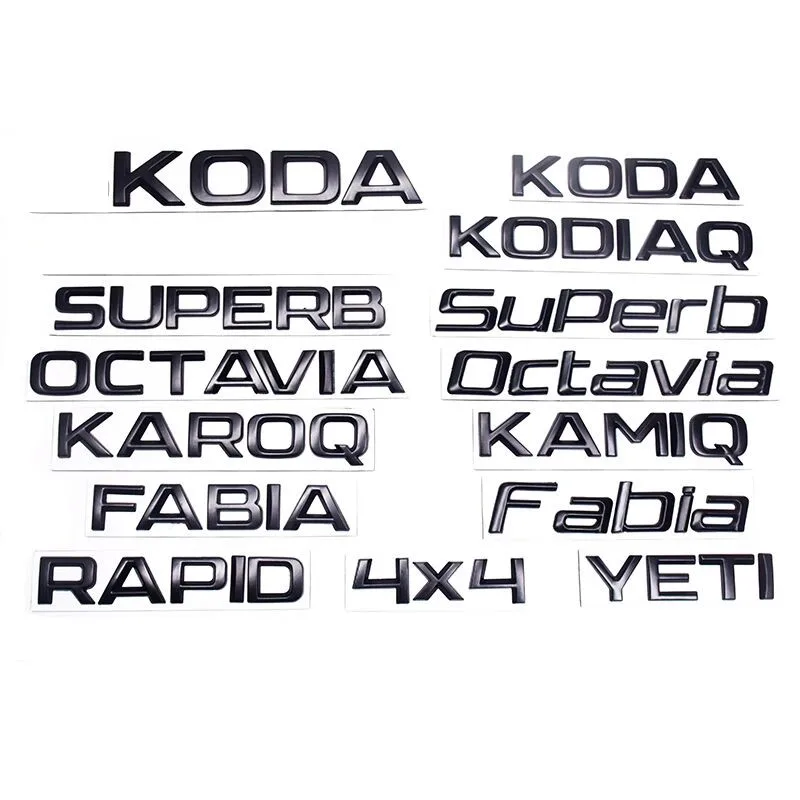 Серебристо-черная эмблема с буквами, логотип для Skoda FABIA KAMIQ KAROQ KODIAQ OCTAVIA RAPID SUPERB YETI, значок на передний и задний багажник автомобиля, наклейка