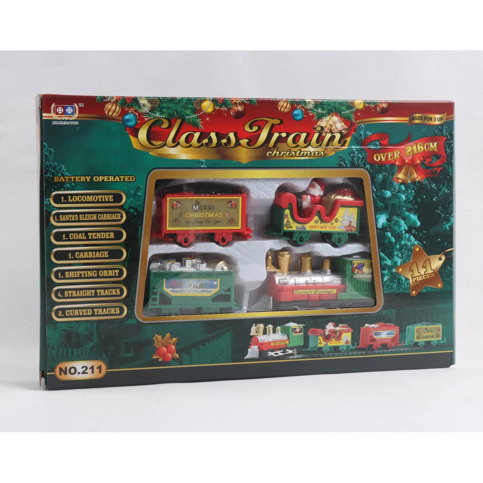 Рождественский игрушечный Электропоезд, подарок Санта-Клауса в грузовом автомобиле и треках, трек окружности, игрушечный поезд на батарейках 216 см