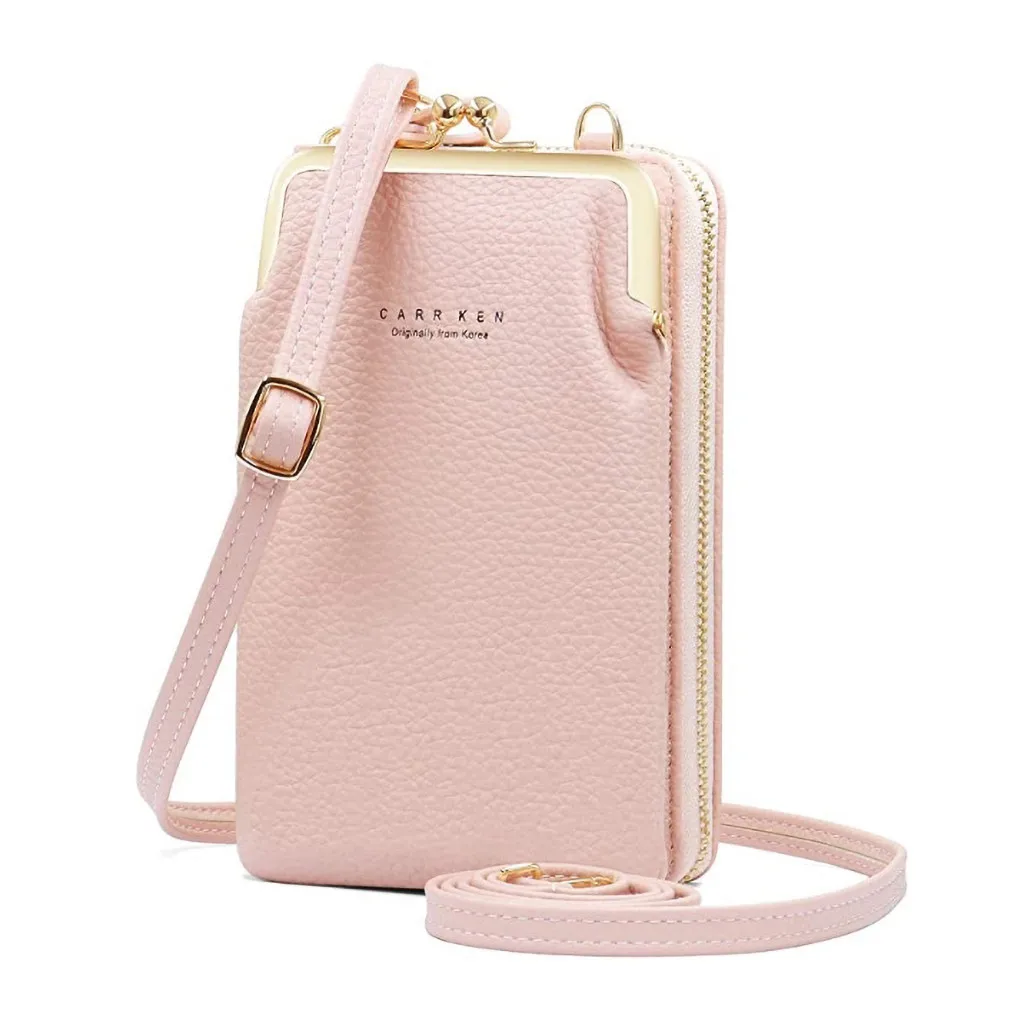 Брендовые сумки через плечо, кошелек для сотового телефона с сенсорным экраном, сумка для смартфона, кошелек из искусственной кожи с металлическим ремешком на плечо, женская сумка