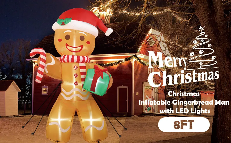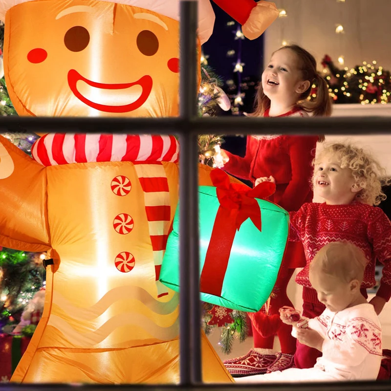 Рождественские надувные игрушки 8 футов, имбирный человечок, выдувные рождественские украшения, уличные игрушки, встроенные светодиодные фонари для новогодвечерние 2021