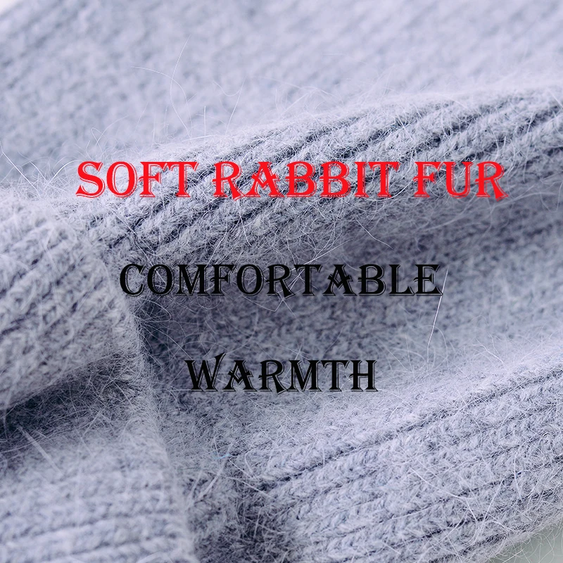 Зимние вязаные облегающие шапки, женская шапка из кроличьего меха, ...