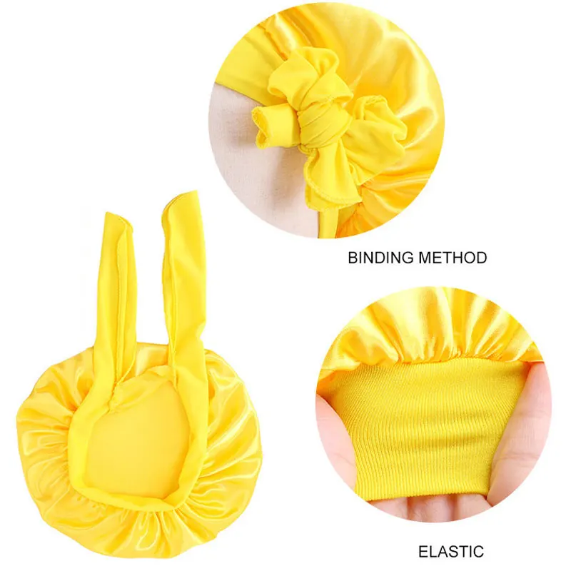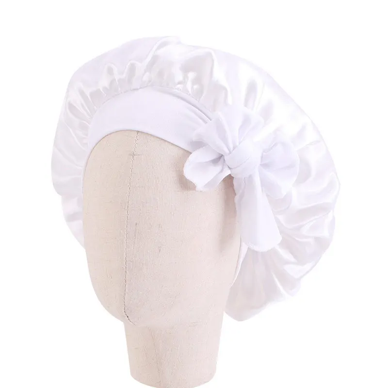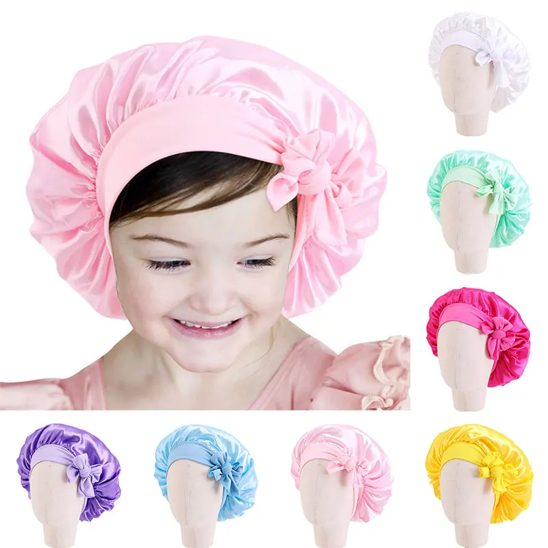 Детская атласная однотонная флейта для ночного сна Baotou, милая эластичная шапочка с бантом для ухода за волосами, ночная шапочка, шапочка, тюрбан, головной убор