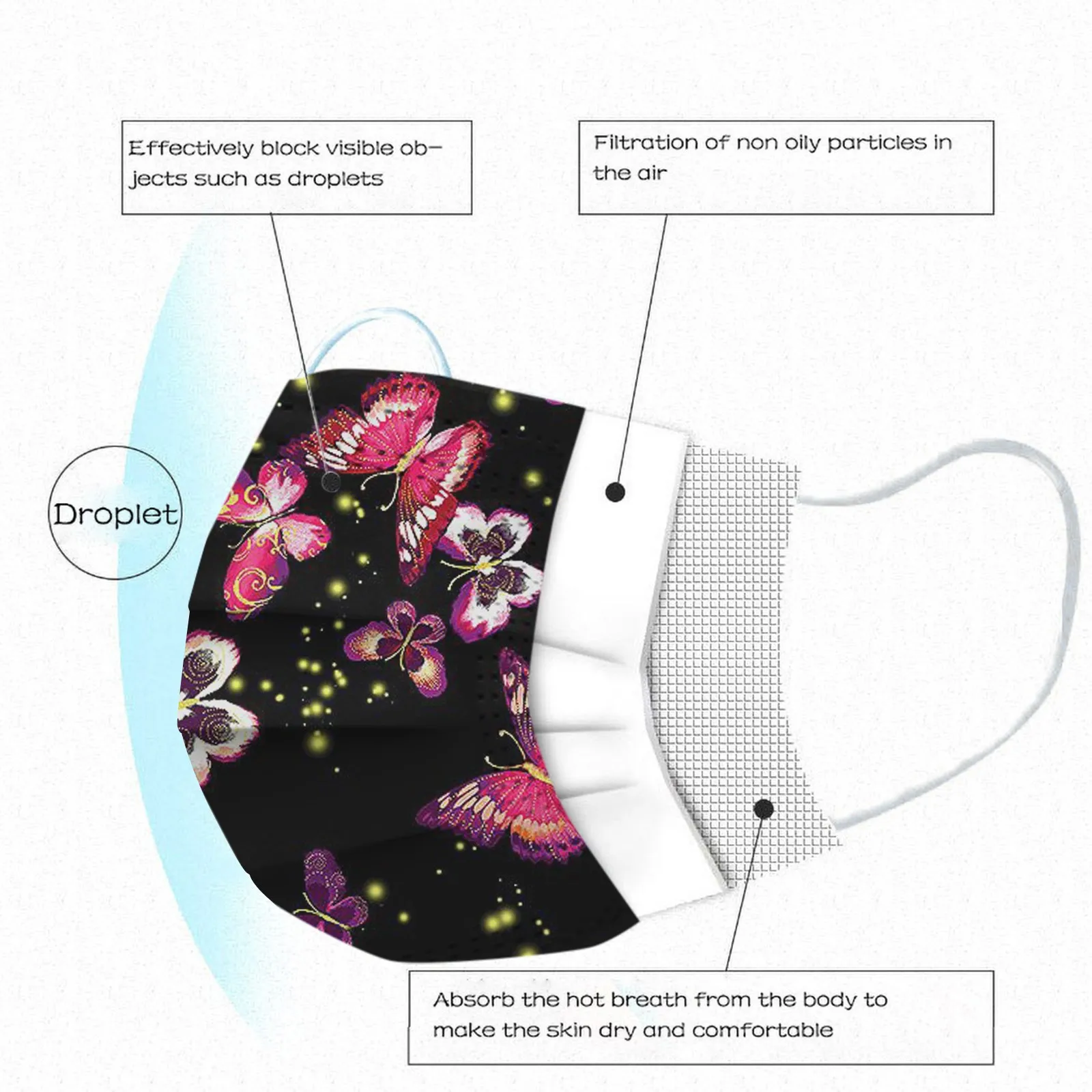Маски одноразовые нетканые с принтом бабочек для взрослых, 3-слойные фильтры, защита от пыли, дышащие, 10 шт., косплей маски для Хэллоуина