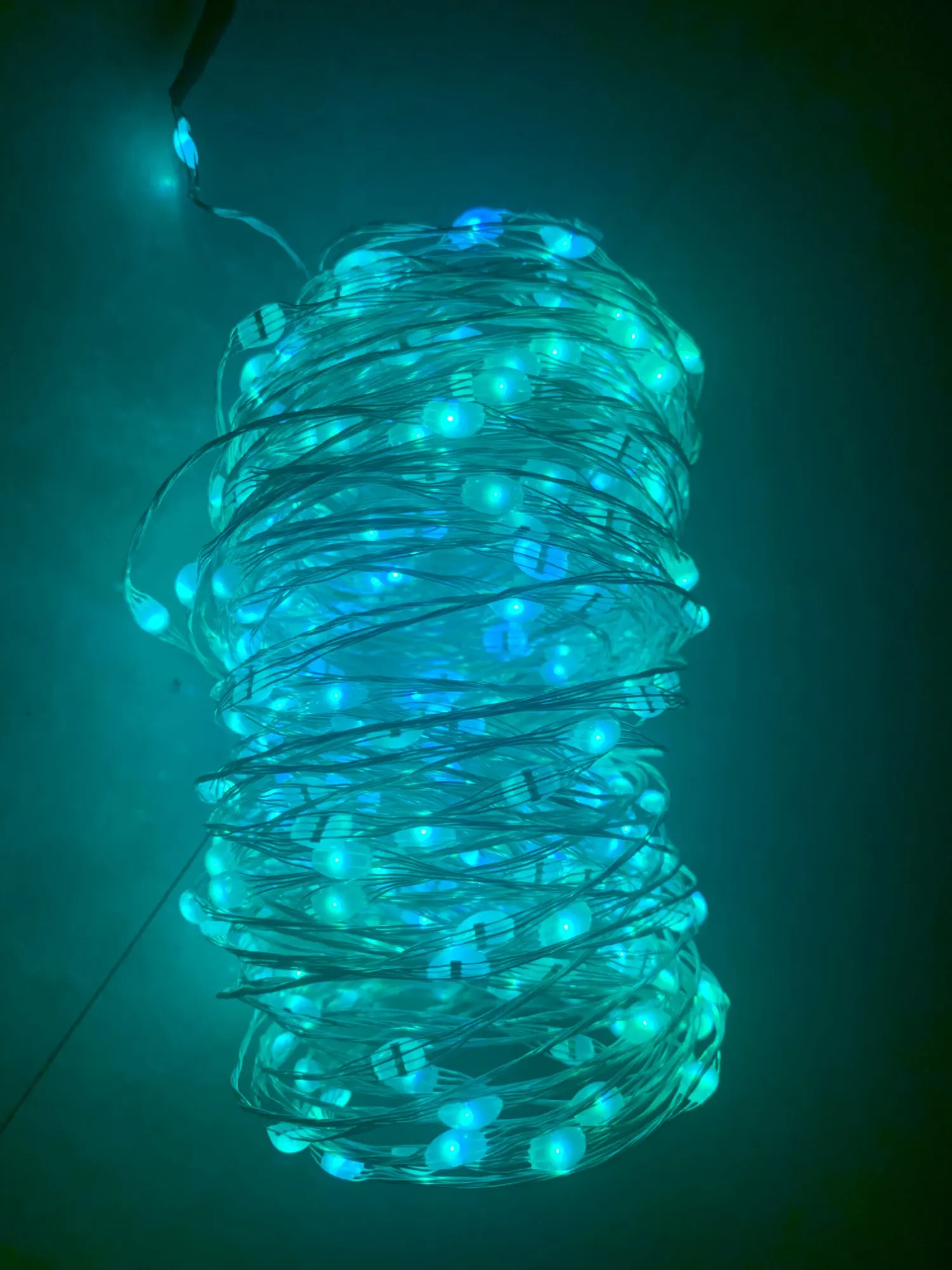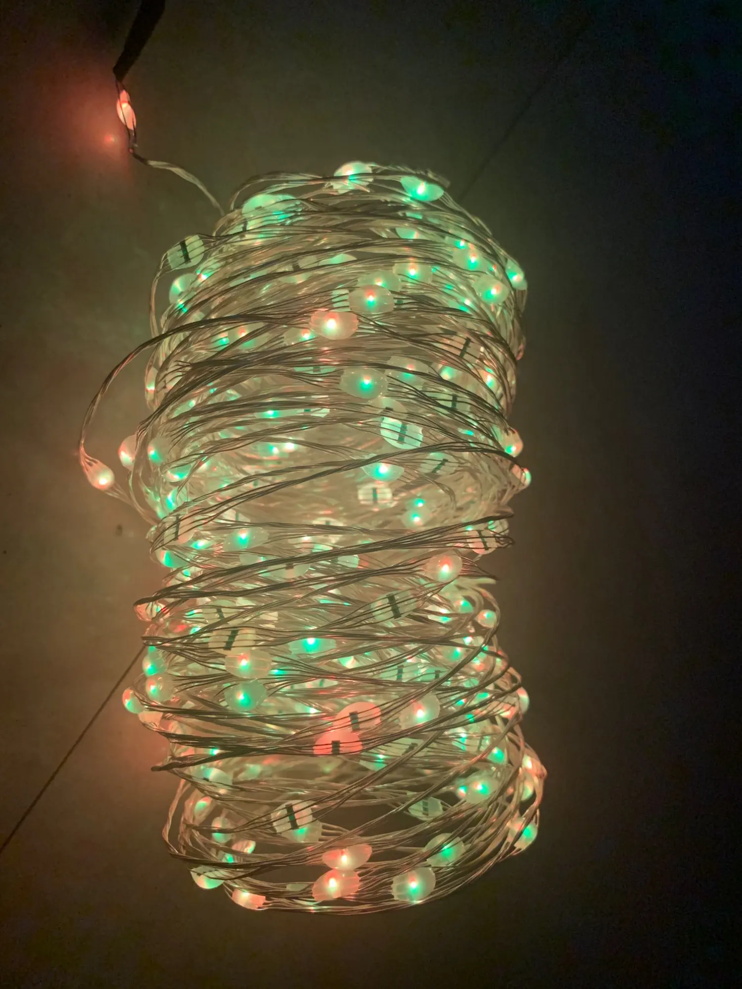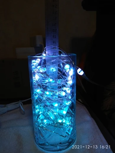 Гирлянда десять метров вместилась в стакан 16 см.высотой.Проволока ,на ёлку для меня сложновато навертеть.Гирлянда уличная.Но интересно ею через телефон цвета менять,под музыку как на дискотеке тусоваться.Цвета не соответствуют расположению на экране.На зелёном горит красный ,на красном зелёный и т.д.Но гирлянда интересная...