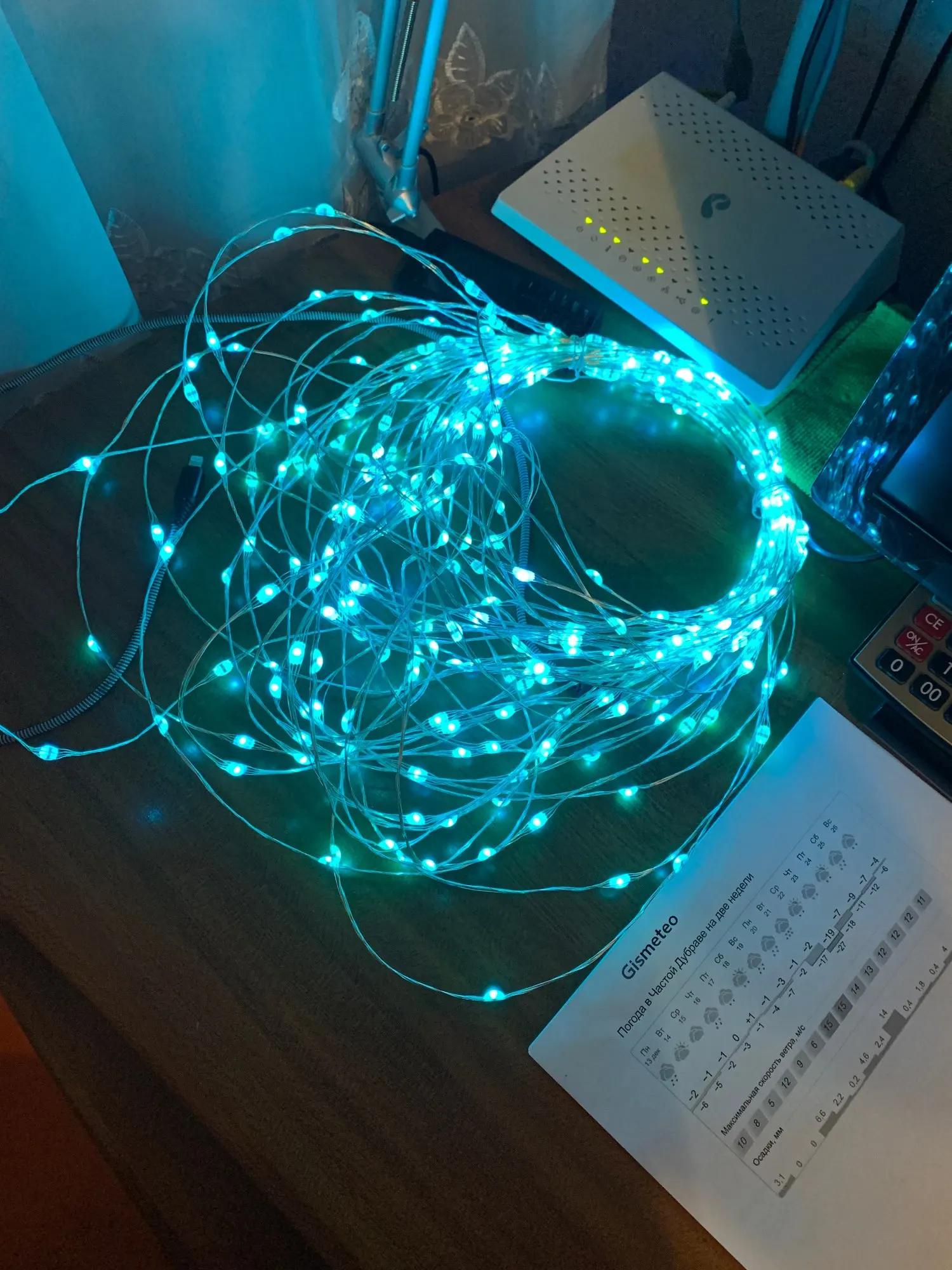 На самом деле, гирлянда не очень яркая и с достаточно простеньким контроллером, так что чудес от нее не ждите. Да и шла посылка до Питера больше месяца.