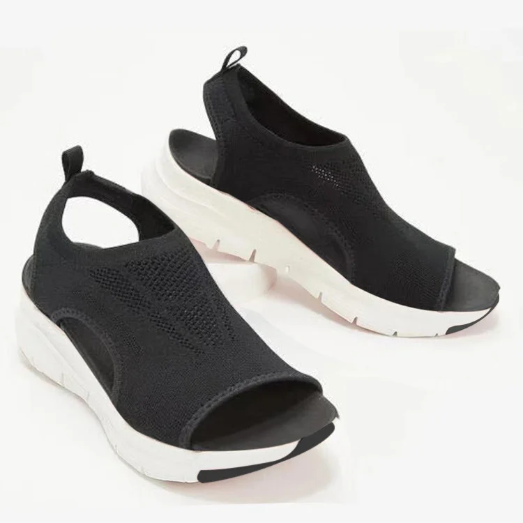2021 женские сандалии, сетчатые повседневные туфли на танкетке, однотонные, на платформе, без шнуровки, женские сандалии, мягкая толстая подошва