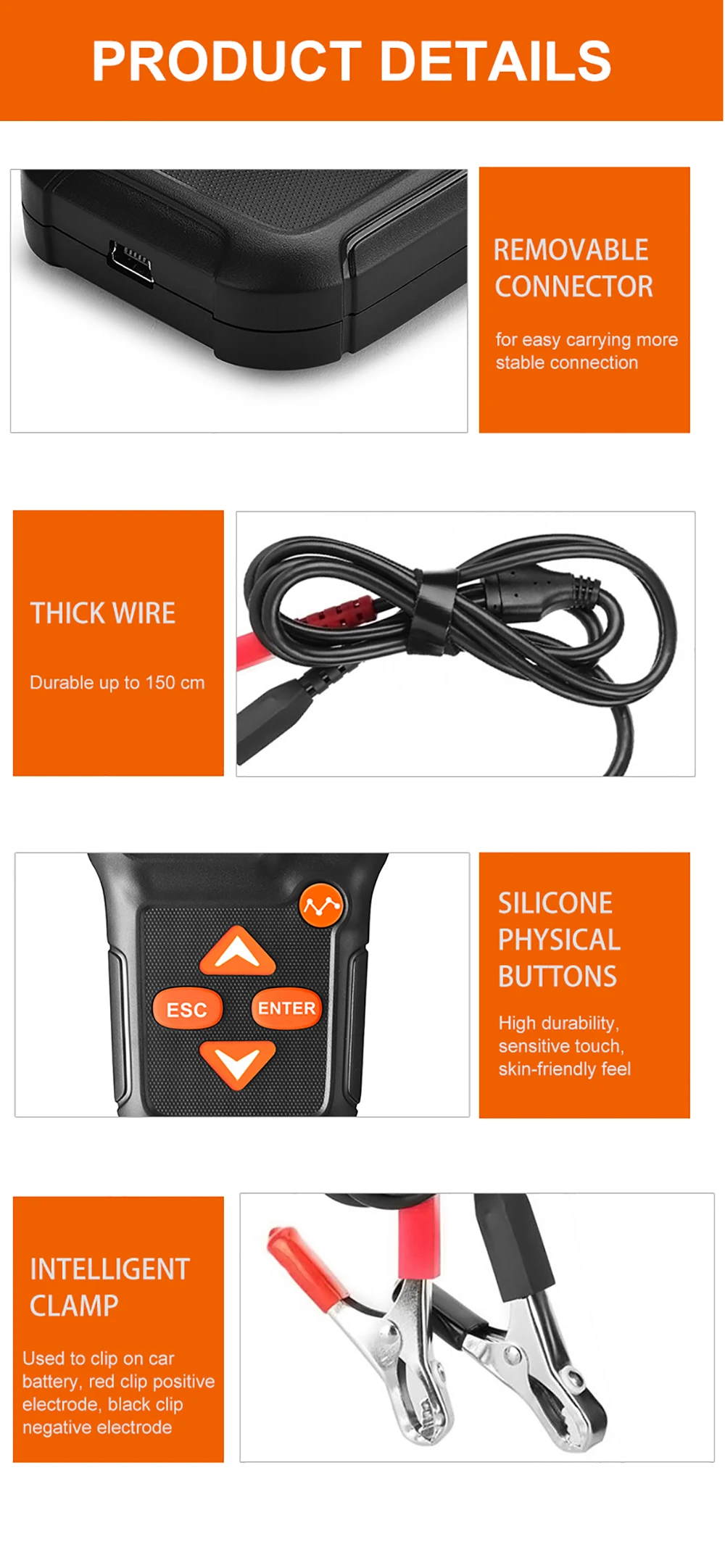 Модернизированная версия от KONNWEI KW600/BA201, тестер батареи KW650 использует современную технологию тестирования проводимости в слове, чтобы легко, быстро и точно Измерьте фактические холодные Скручивающиеся амперы пусковой батареи транспортного средства, здоровое состояние самой батареи и общую неисправность системы запуска транспортного средства и системы зарядки, Что может помочь техническому обслуживанию быстро и точно найти проблему, таким образом, для быстрого ремонта автомобиля.