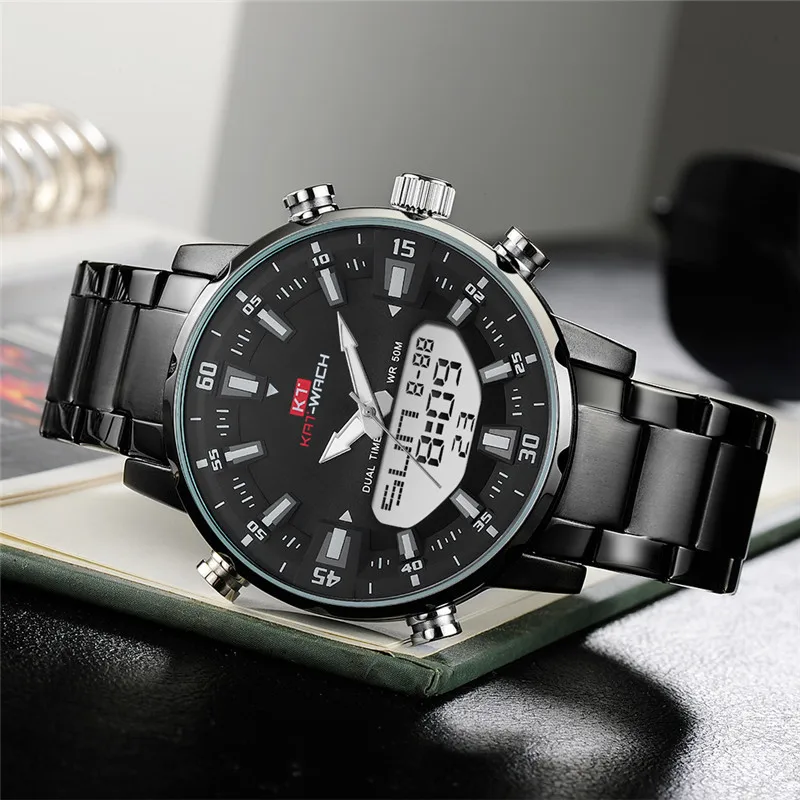 Мужские часы ведущей марки KAT-WACH, водонепроницаемые спортивные цифровые часы, мужские светодиодные стальные военные кварцевые часы для мужчин, наручные часы