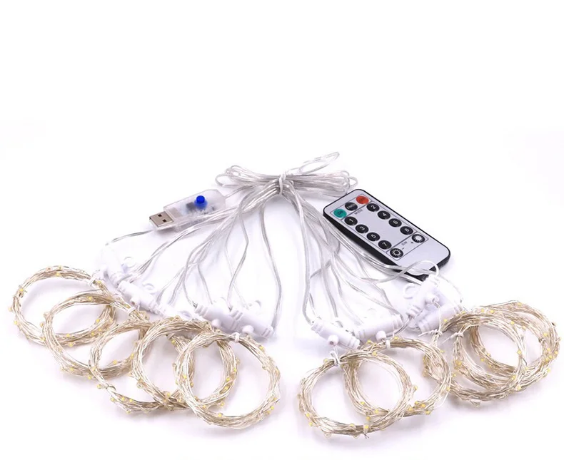 3*3-300 светодиодный, шаг 30 см, 10 струн (расстояние между лампами и лампами составляет 10 см),3*2-200 светодиодный3*1-100 светодиодныйВедущий провод: 2,5 метровЧетыре режима голосового управления + восемь обычных режимовУпаковка: коробка из воловьей кожи, руководство по эксплуатации на английском языке * 1, 17-клавишным Голосовое управление дистанционный пульт * 1, светильник строка * 1, крючок (бесплатно)