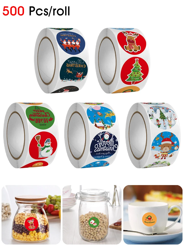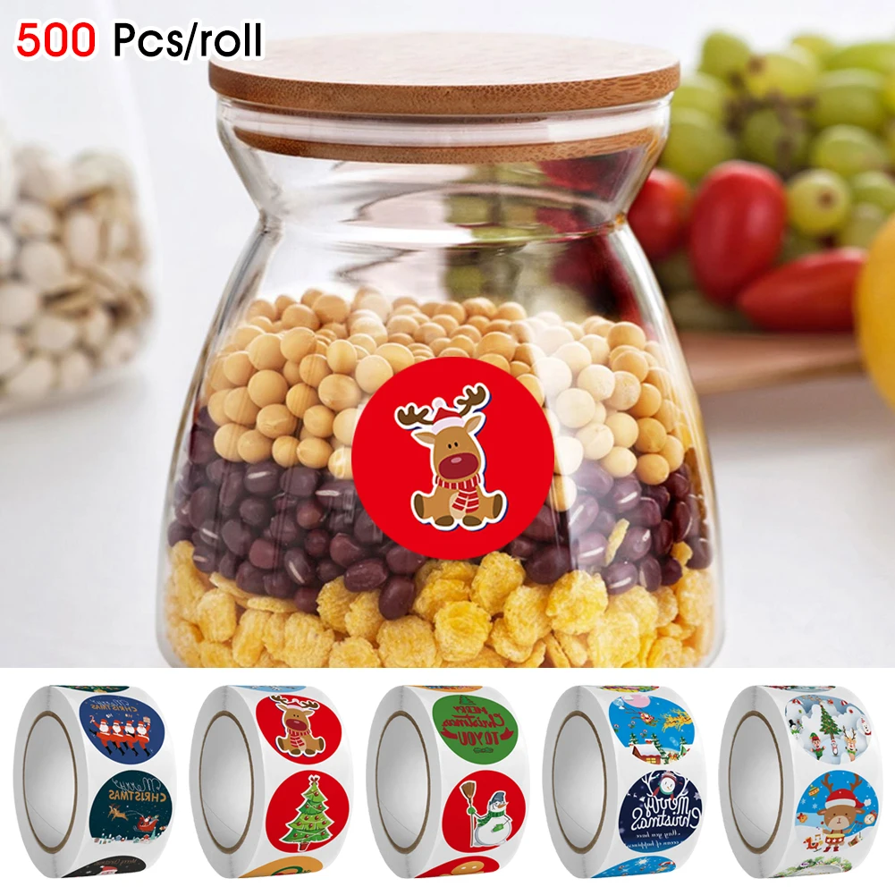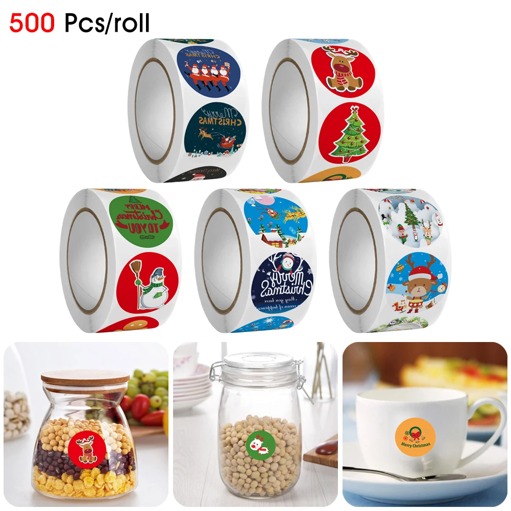 500 шт., наклейки на Рождество, Рождественская елка, лось, пакет для конфет, герметичная наклейка, ярлыки, украшения, новый год