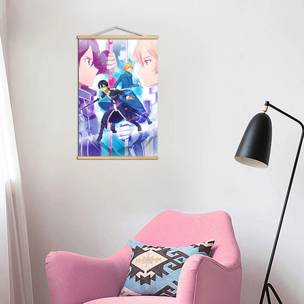Постеры из аниме Сан-меч, художественный онлайн-постер с HD рисунком манги, эугео Кирито, подвесные плакаты из массива дерева для украшения стен