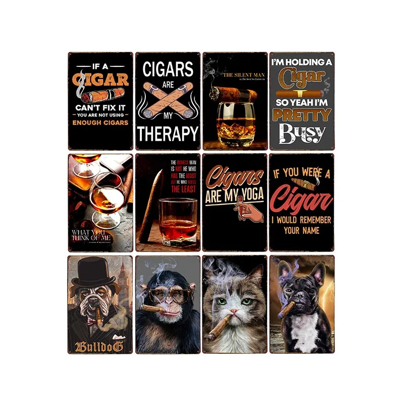 Оловянная сигара, вывеска металлическая пластина Bar, постер, украшение для комнаты, винтажный Декор на стену, настенная тарелка 20x30 см