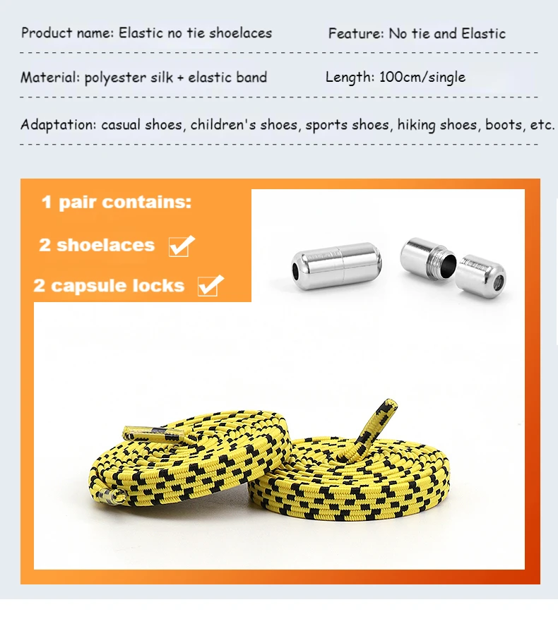 Экономия времени/Простота в использовании: без галстука, никогда не беспокойтесь о том, чтобы завязывать обувь снова во время любой деятельности. Простой в использовании. Надевать обувь не проще. Эти эластичные шнурки быстро и легко снимаются.