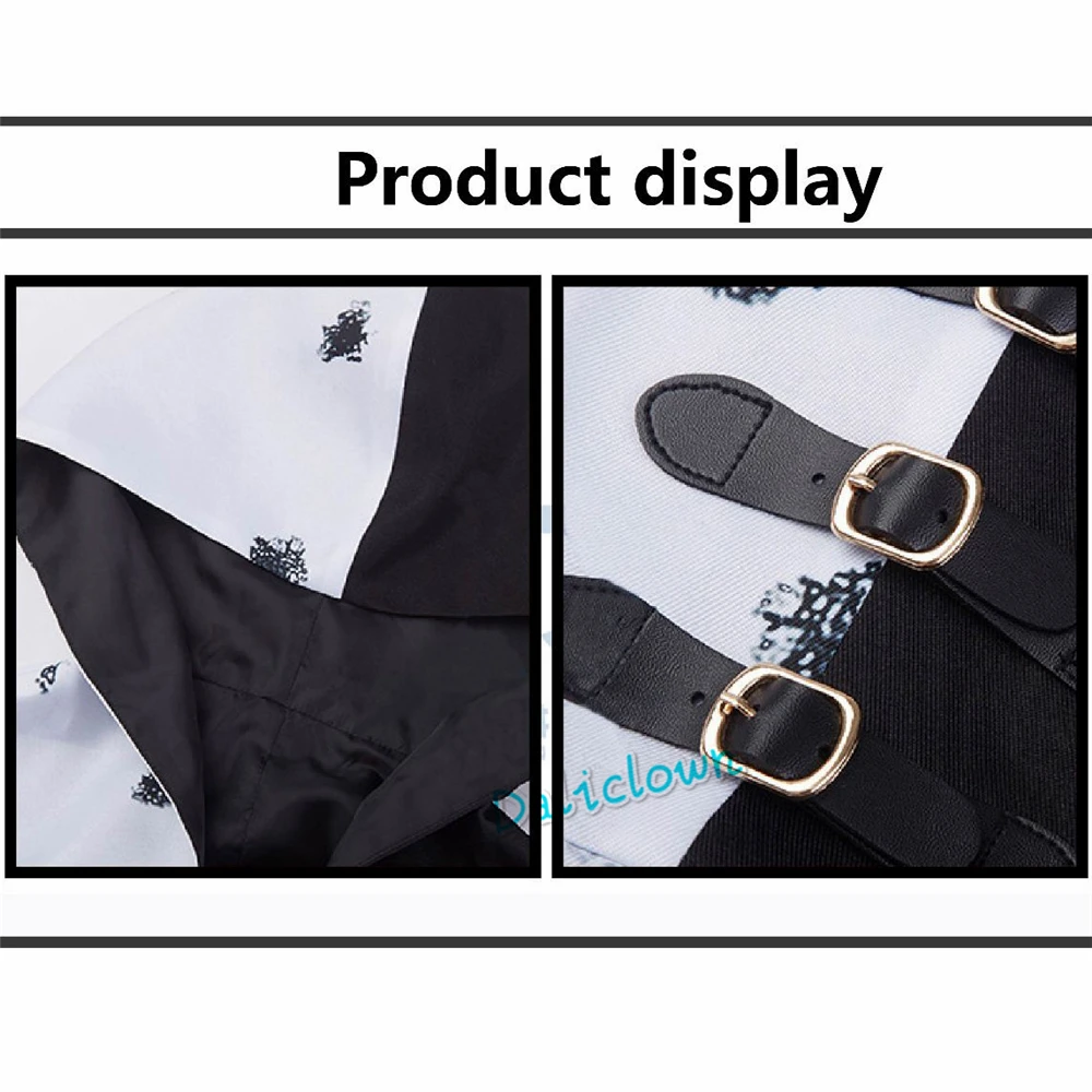 Костюм из фильма «Круэлла де вил» для девочек и женщин; Цвет черный, белый; Платье в горошек; Парик; Аниме; Костюм горничной; Наряд для костюмированной вечеринки на Хэллоуин