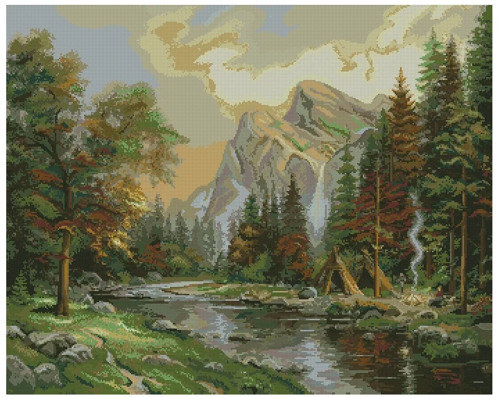 Лесная хижина мост пружина вода высшее качество вышивка рукоделие 1...
