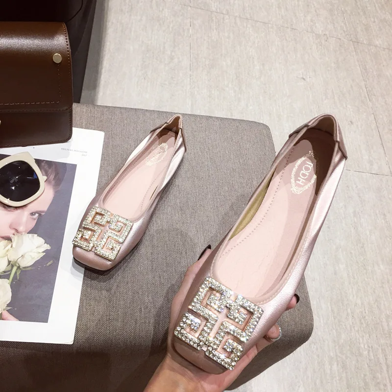 Туфли стразы женские на плоской подошве, осенние туфли с квадратным носком, лоферы на плоской подошве