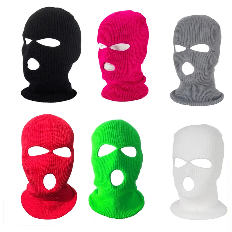 Маска, закрывающая все лицо, вязаная Балаклава с тремя отверстиями,...