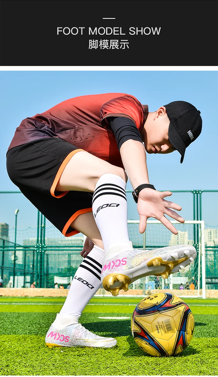 Мужские футбольные бутсы, футбольные бутсы, Длинные шипы, шипы TF, высокие кроссовки, мягкая Закрытая футбольная обувь 35-45